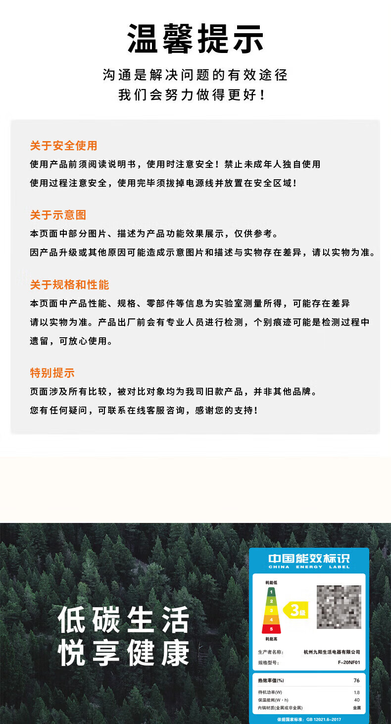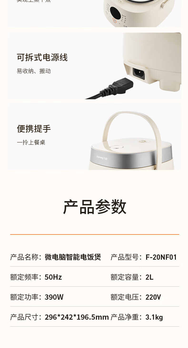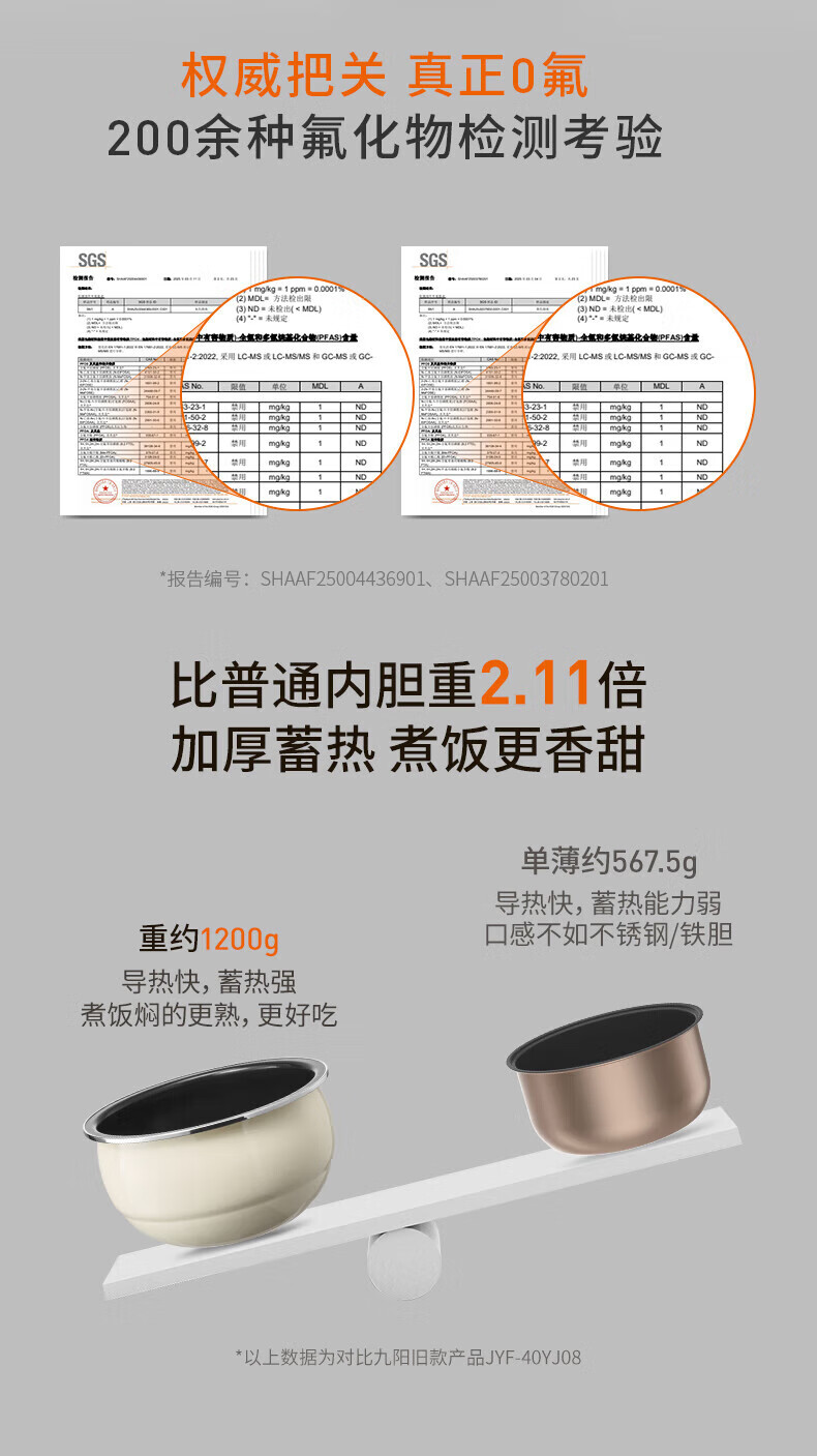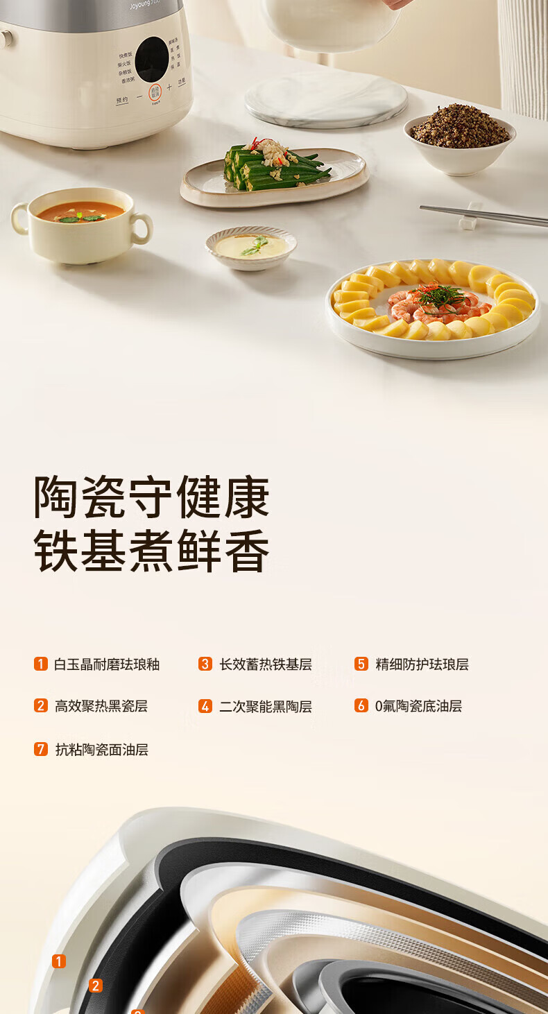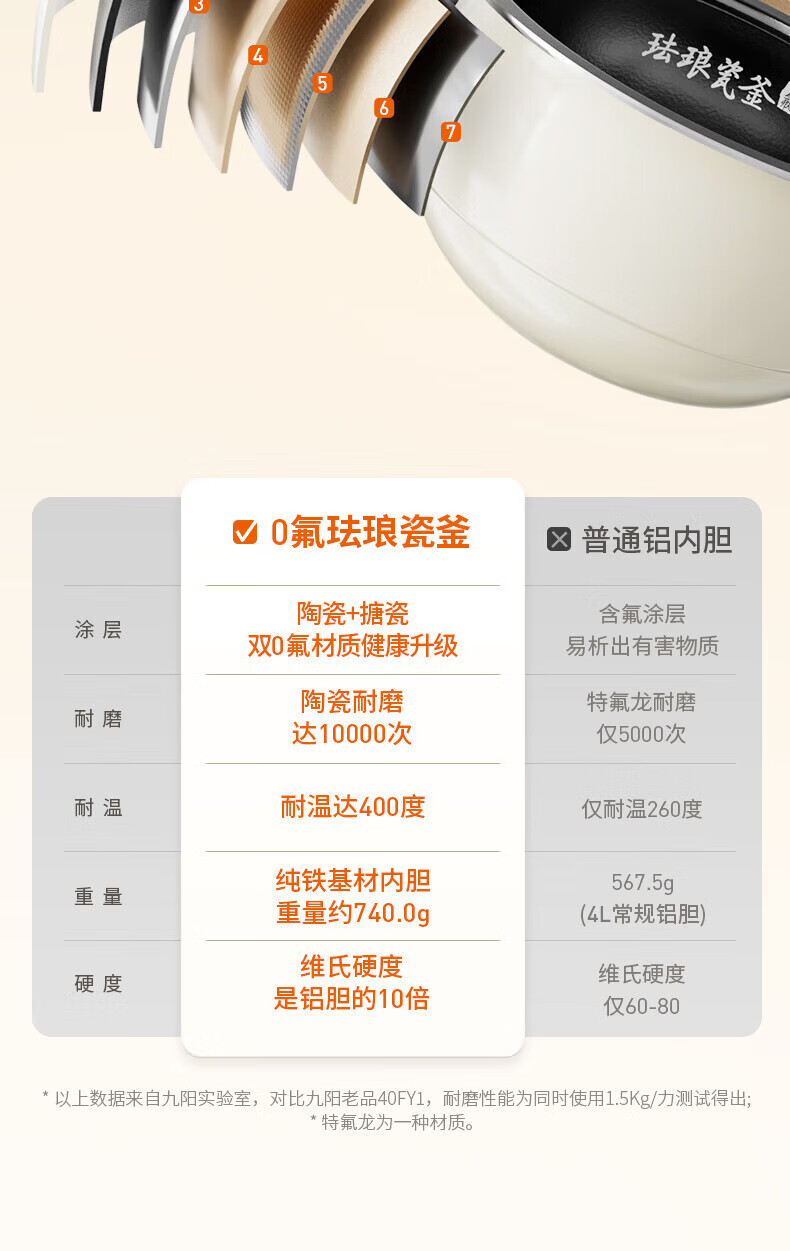 九阳电饭煲0氟珐琅瓷釜4L升家用多功能预约微压快煮电饭锅煮饭锅