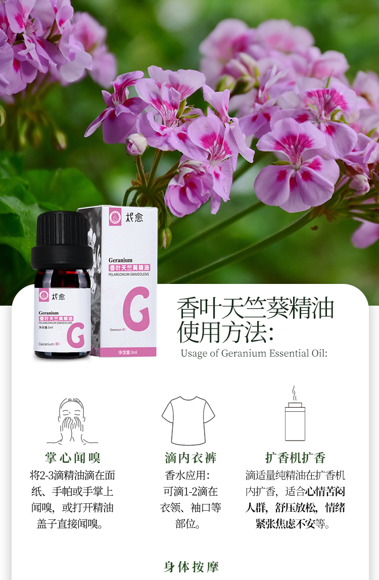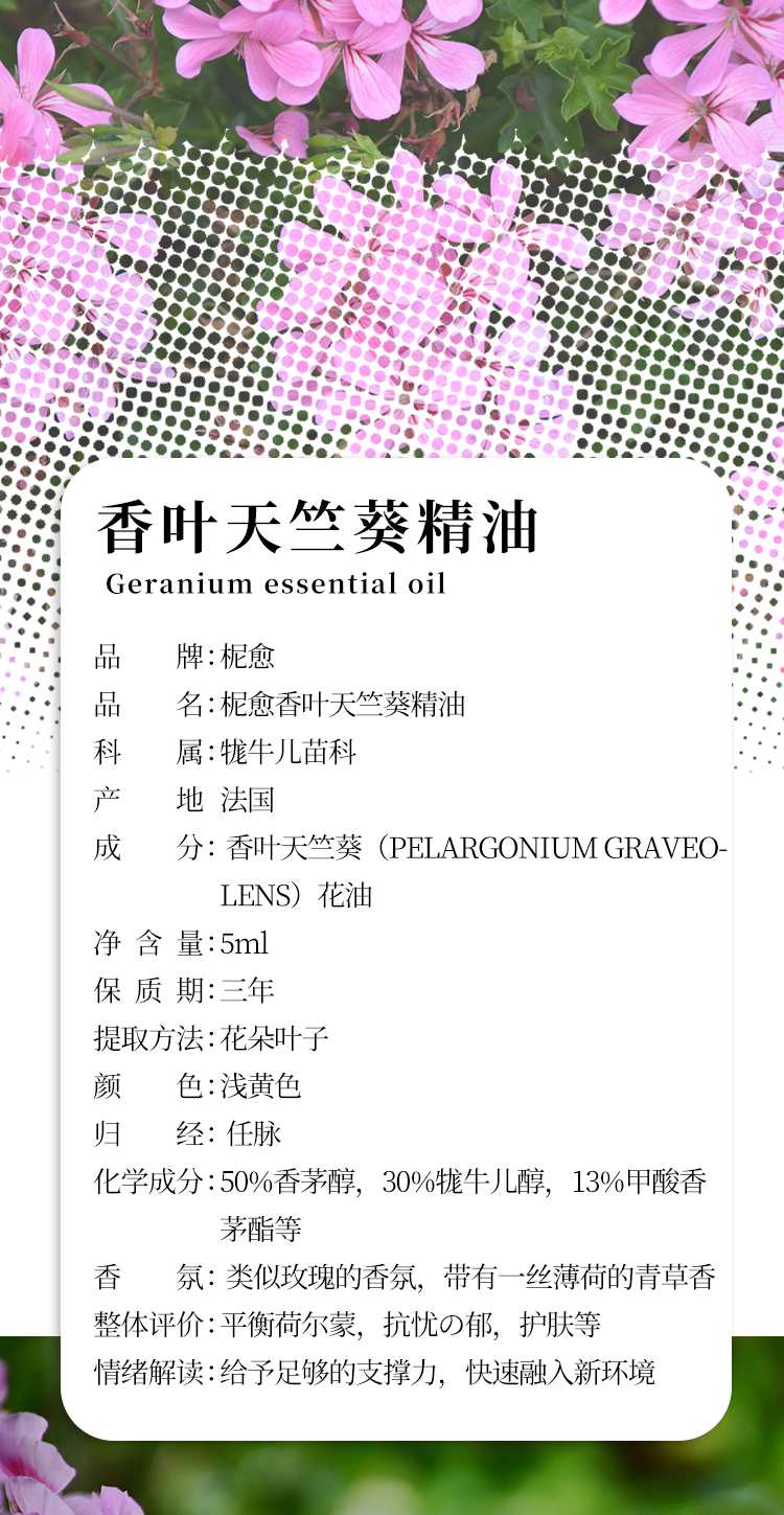【柅愈】香叶/玫瑰纯精油5ml 法国原产天竺葵精油 单方纯精油 扩香/熏香/调油