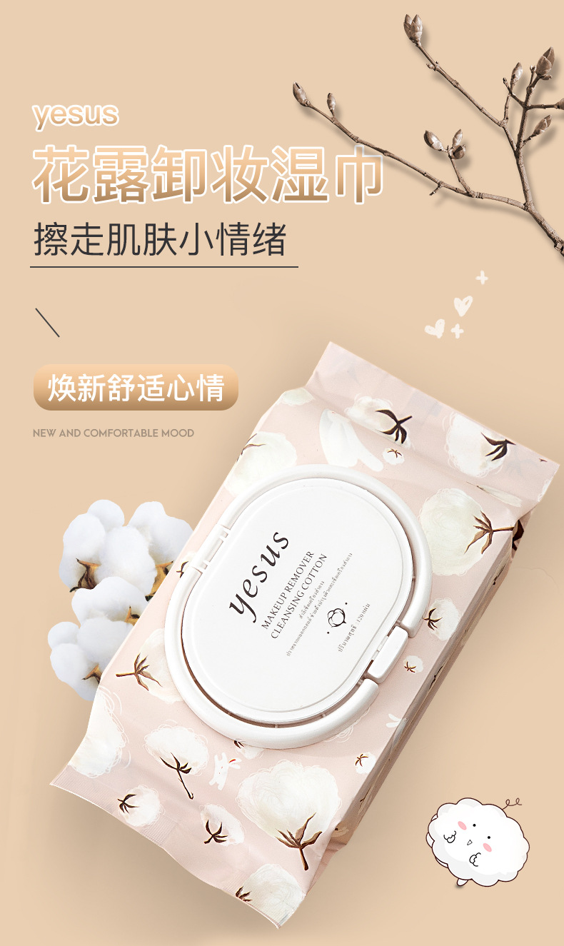【柔软亲肤 一抹速卸】泰国YESUS花露卸妆湿巾 卸妆棉眼唇脸部温和无刺激