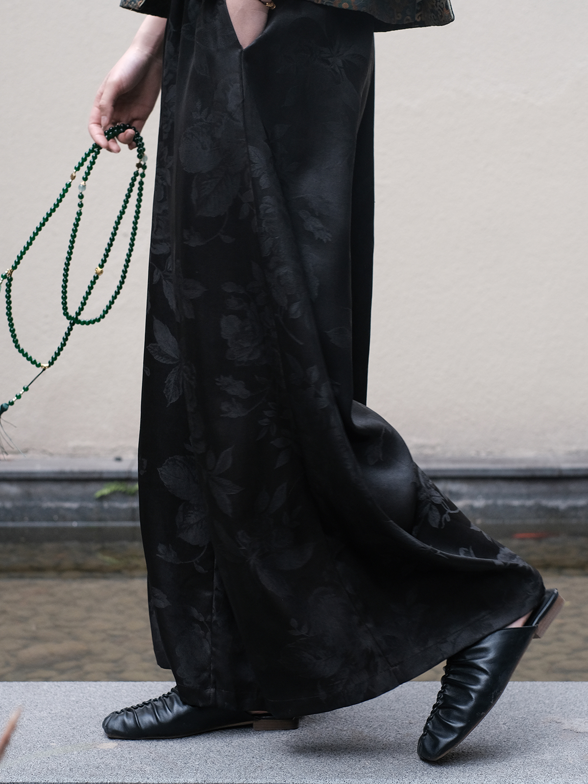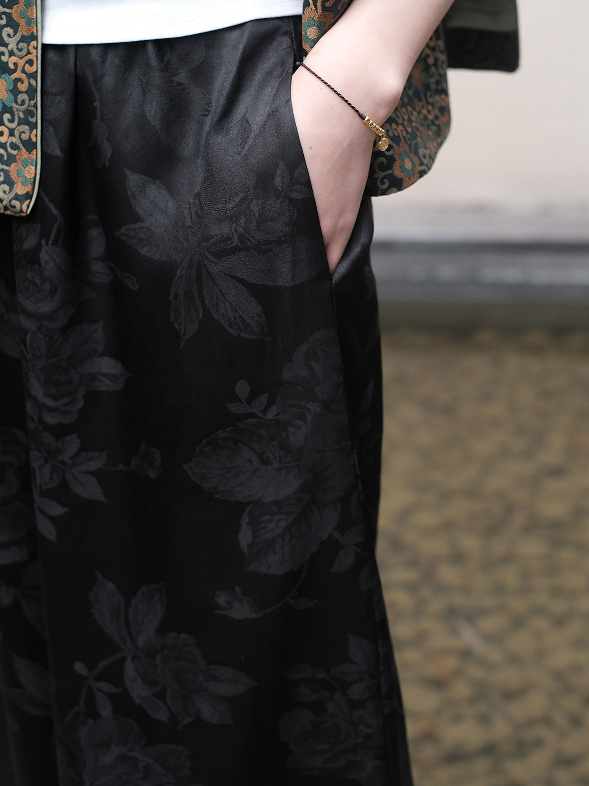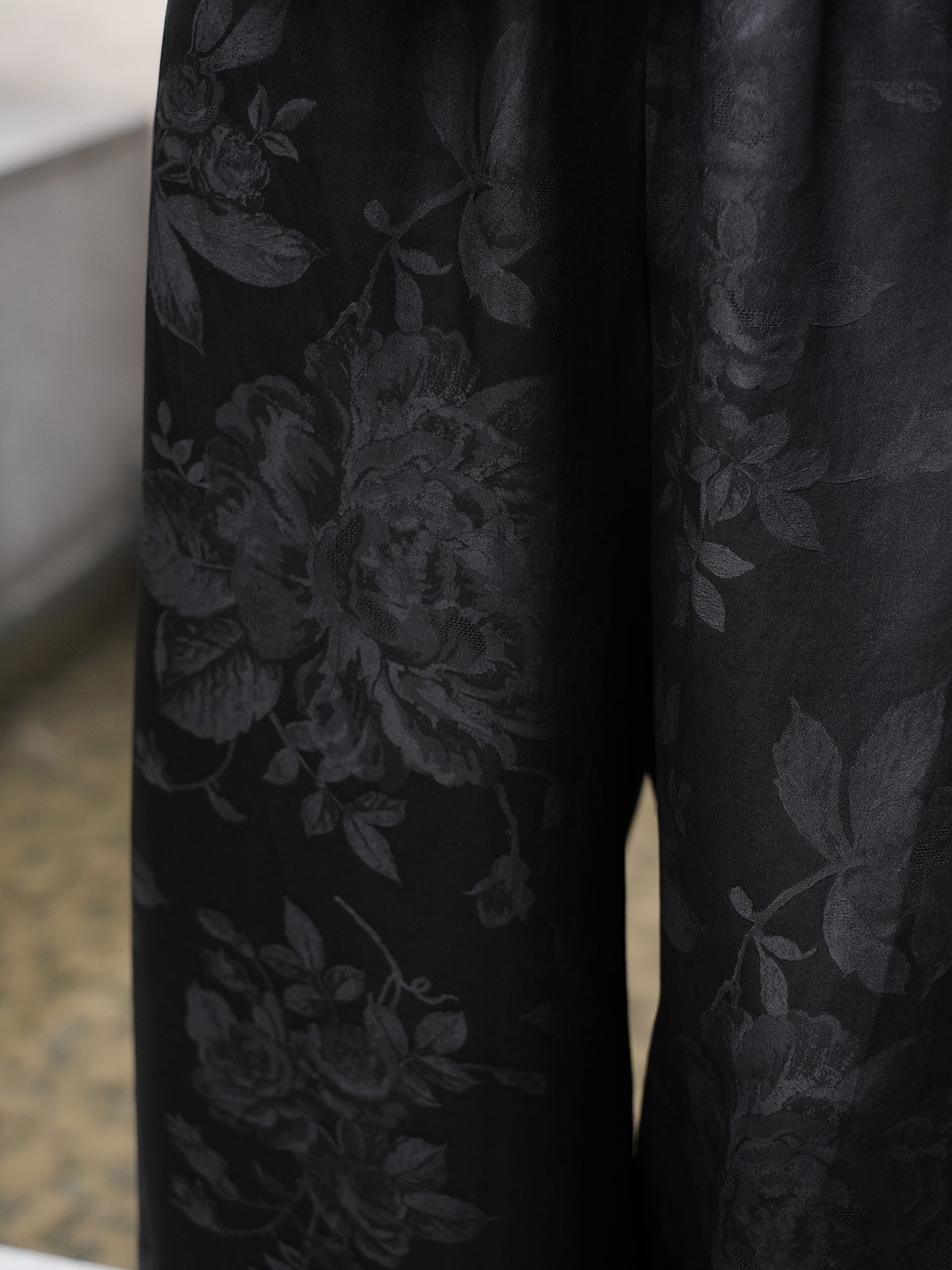 盛唐牡丹 |真丝提花阔腿裤珍珠白平腰版 (蝶恋花纹样)
