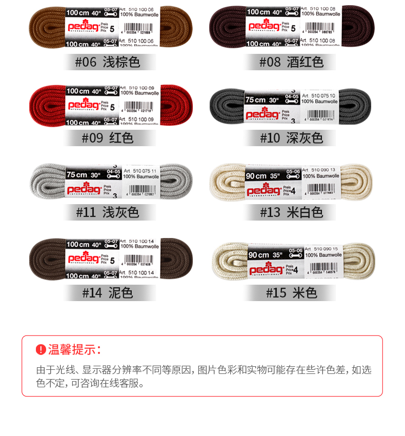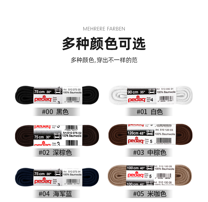 德国pedag实心圆形运动休闲鞋带5510