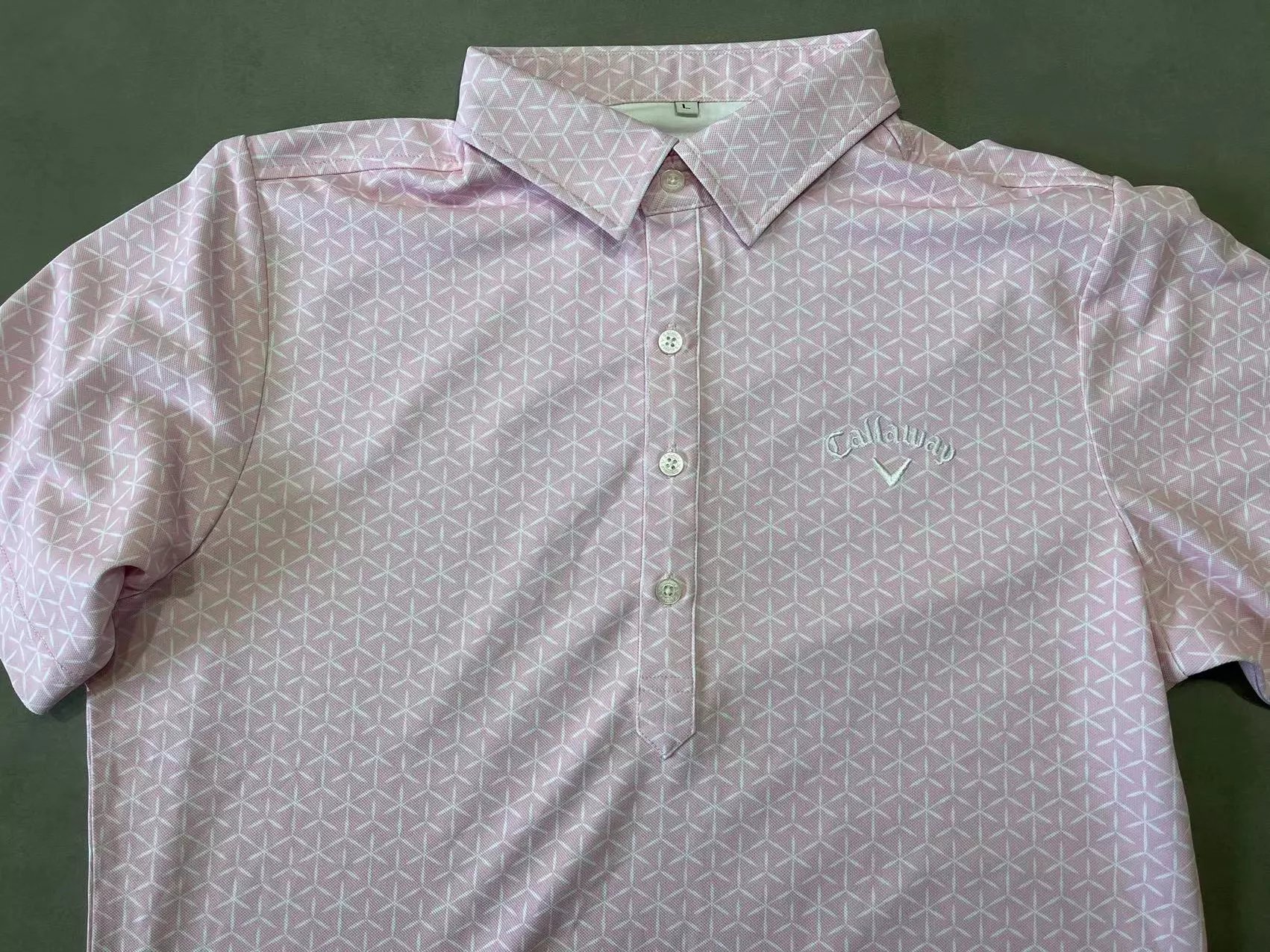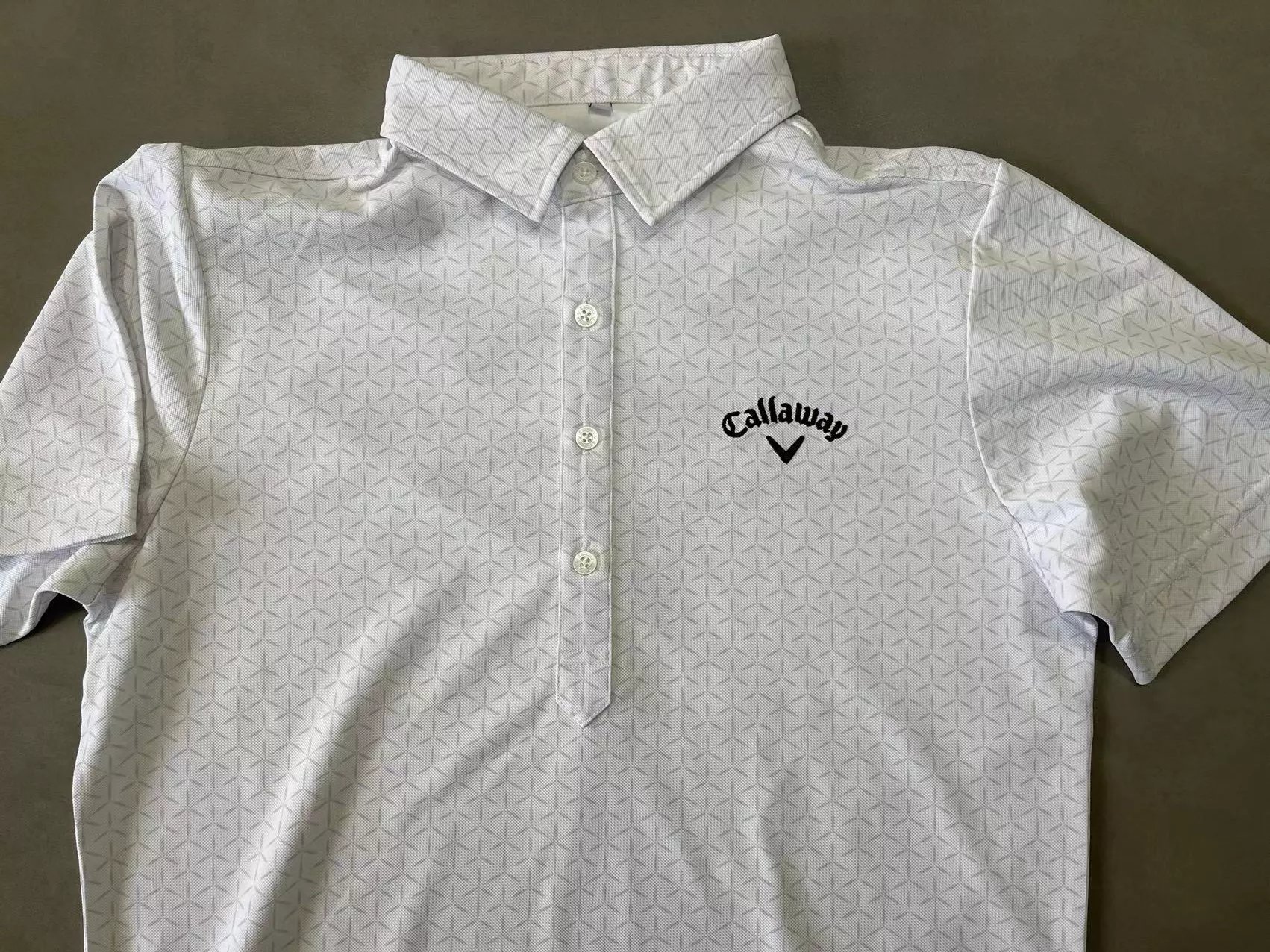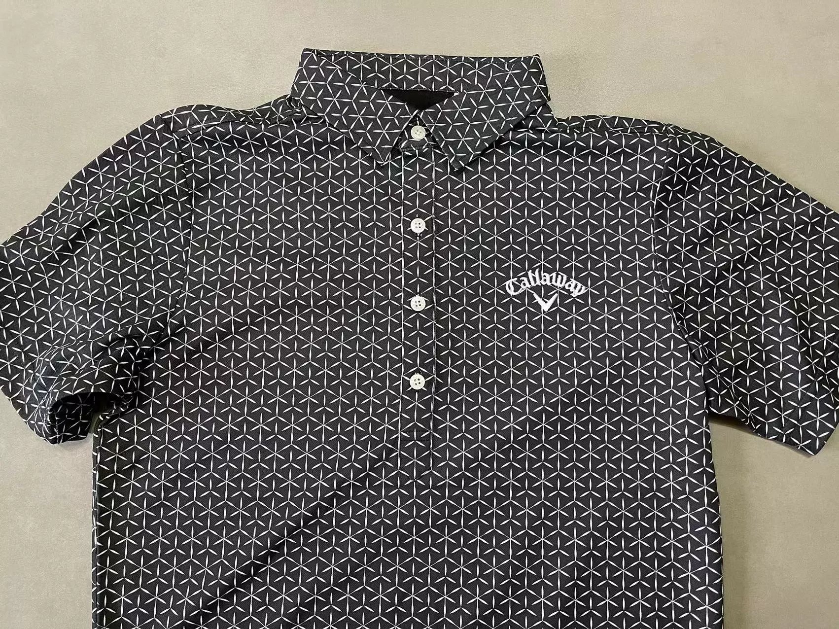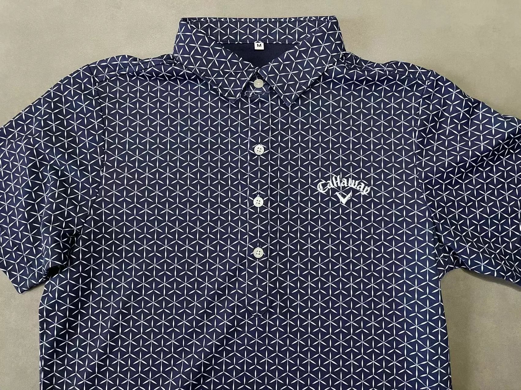 底色搭配白色几何满印图案,左胸处有品牌刺绣标识,采用经典翻领、纽扣门襟设计。面料吸水速干,UPF15,运动休闲两用的多功能性。 具体尺寸: M / 胸围100cm/长度68cm/肩宽41cm/袖长22cm L / 胸围106cm/长度70cm/肩宽43cm/袖长23cm LL / 胸围112cm/长度72cm/肩宽45cm/袖长24cm (Tip:尺寸均为手工测量如有1-3cm误差属正常情况) 外单保真,部分三标不齐(领标,洗标,吊牌),介意者慎拍!