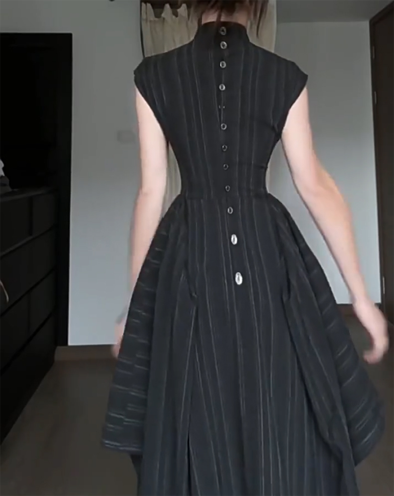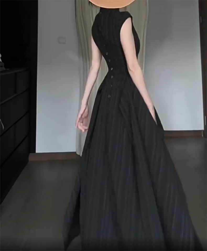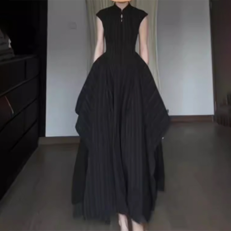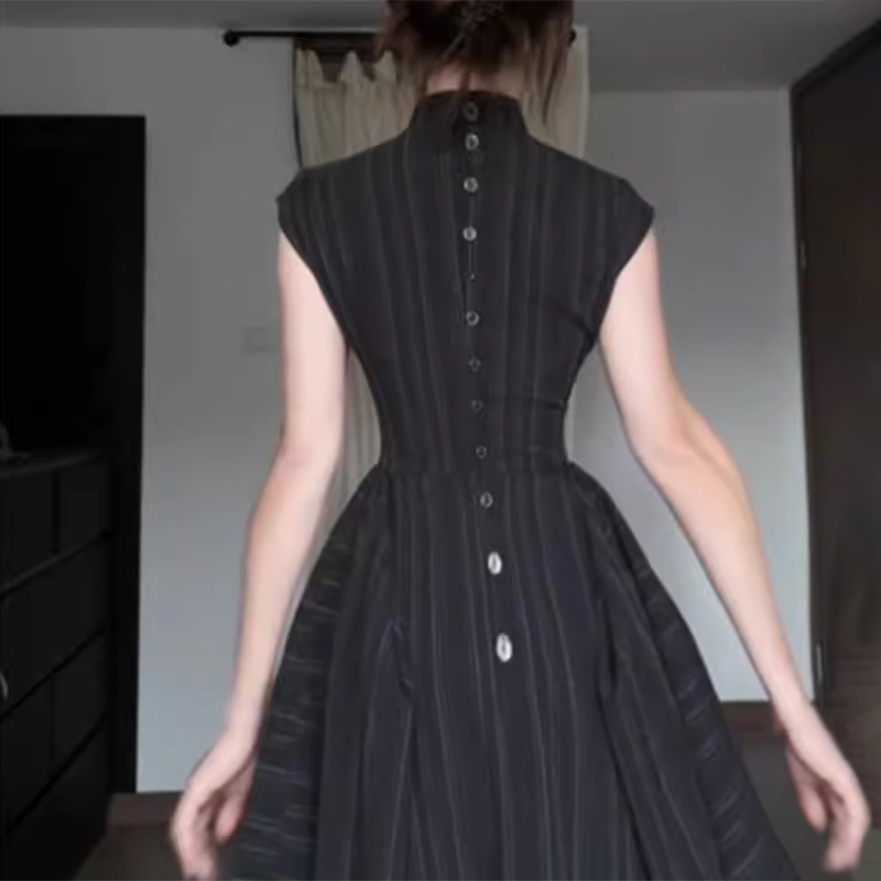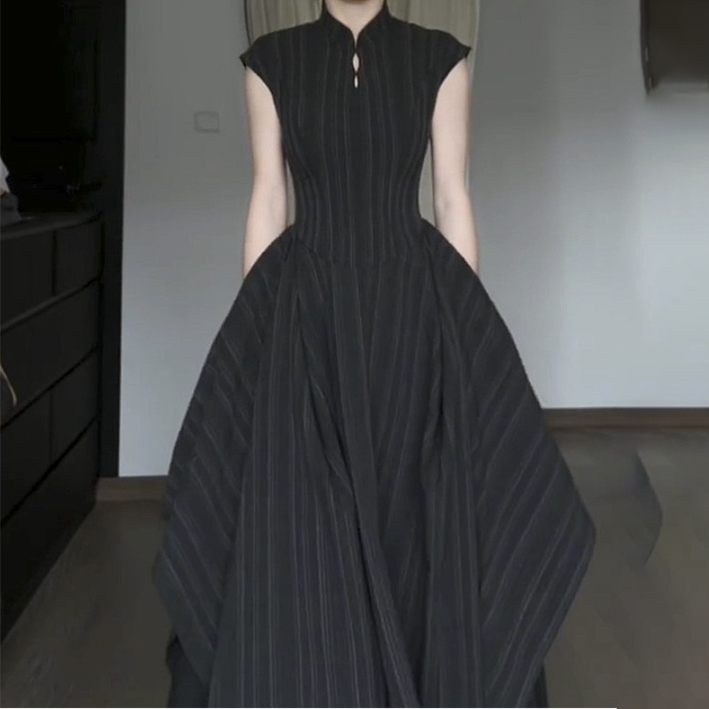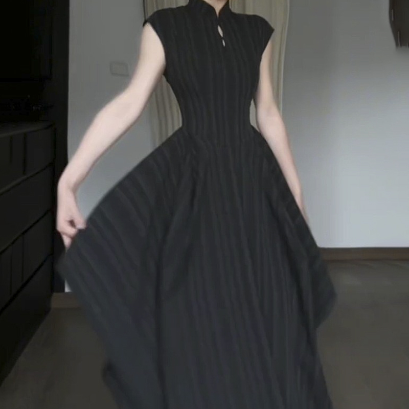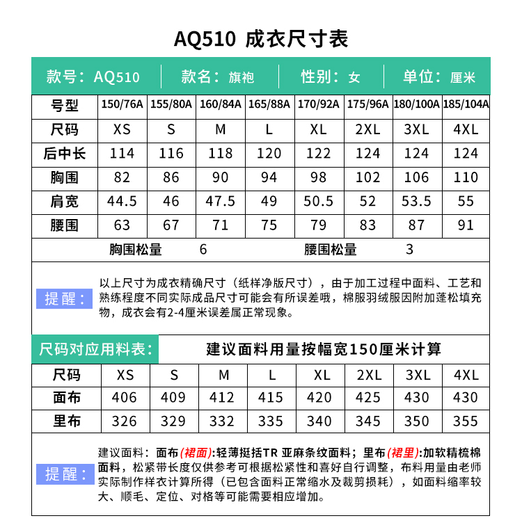 裁缝学苑AQ510新中式无袖立领旗袍纸样连衣裙女收腰大摆长裙图