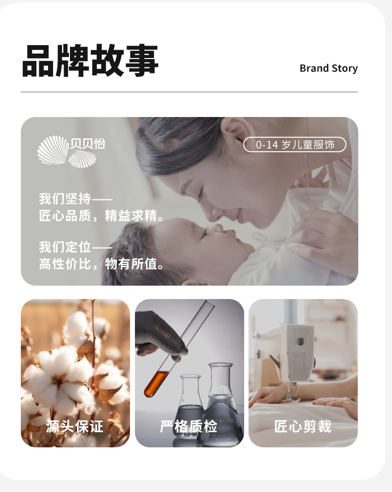 - 贝贝怡专注0-6岁婴幼儿服饰,坚持安全、柔软、舒适的产品理念,为千万中国家庭提供超高品质、安全可靠的婴幼儿服饰产品,妈妈放心,宝宝开心!