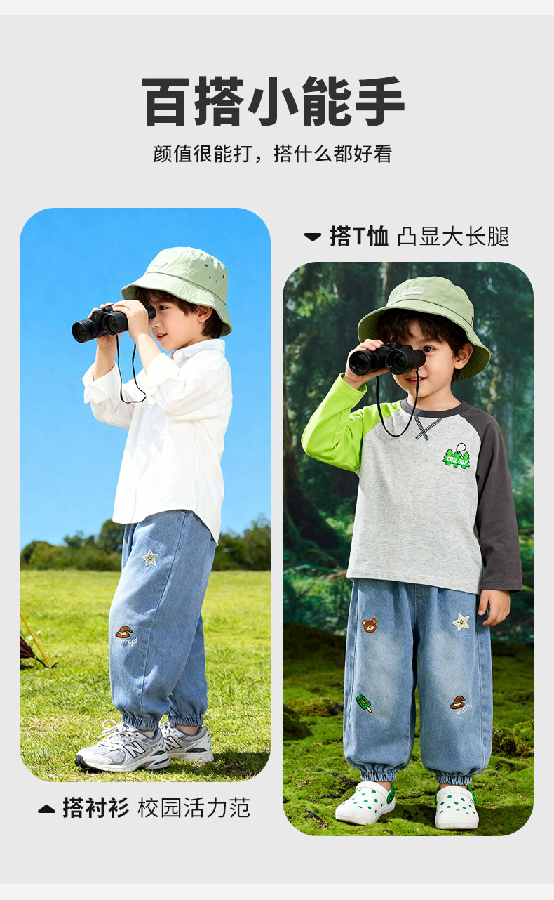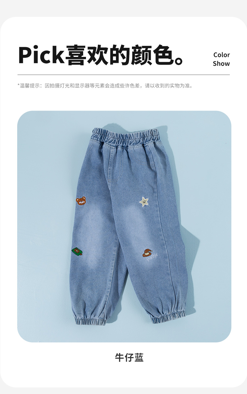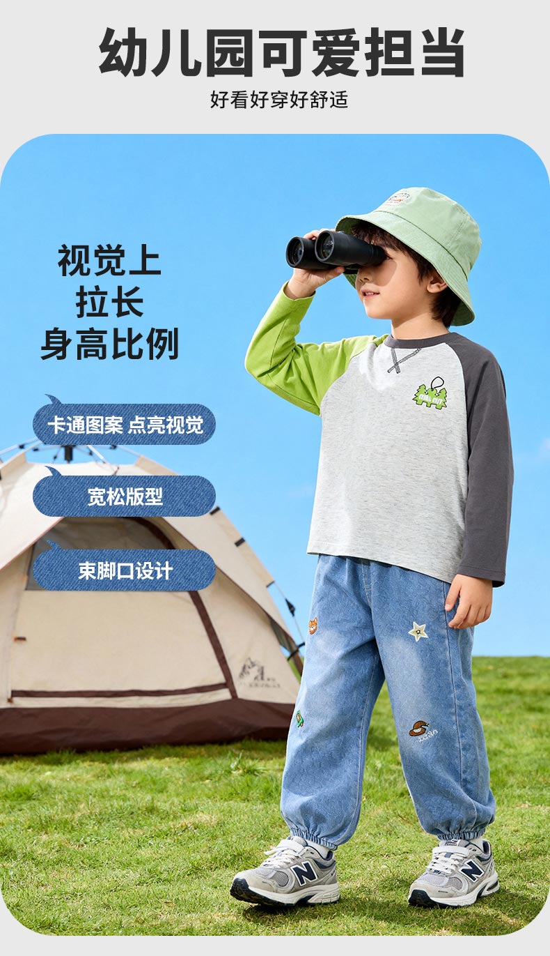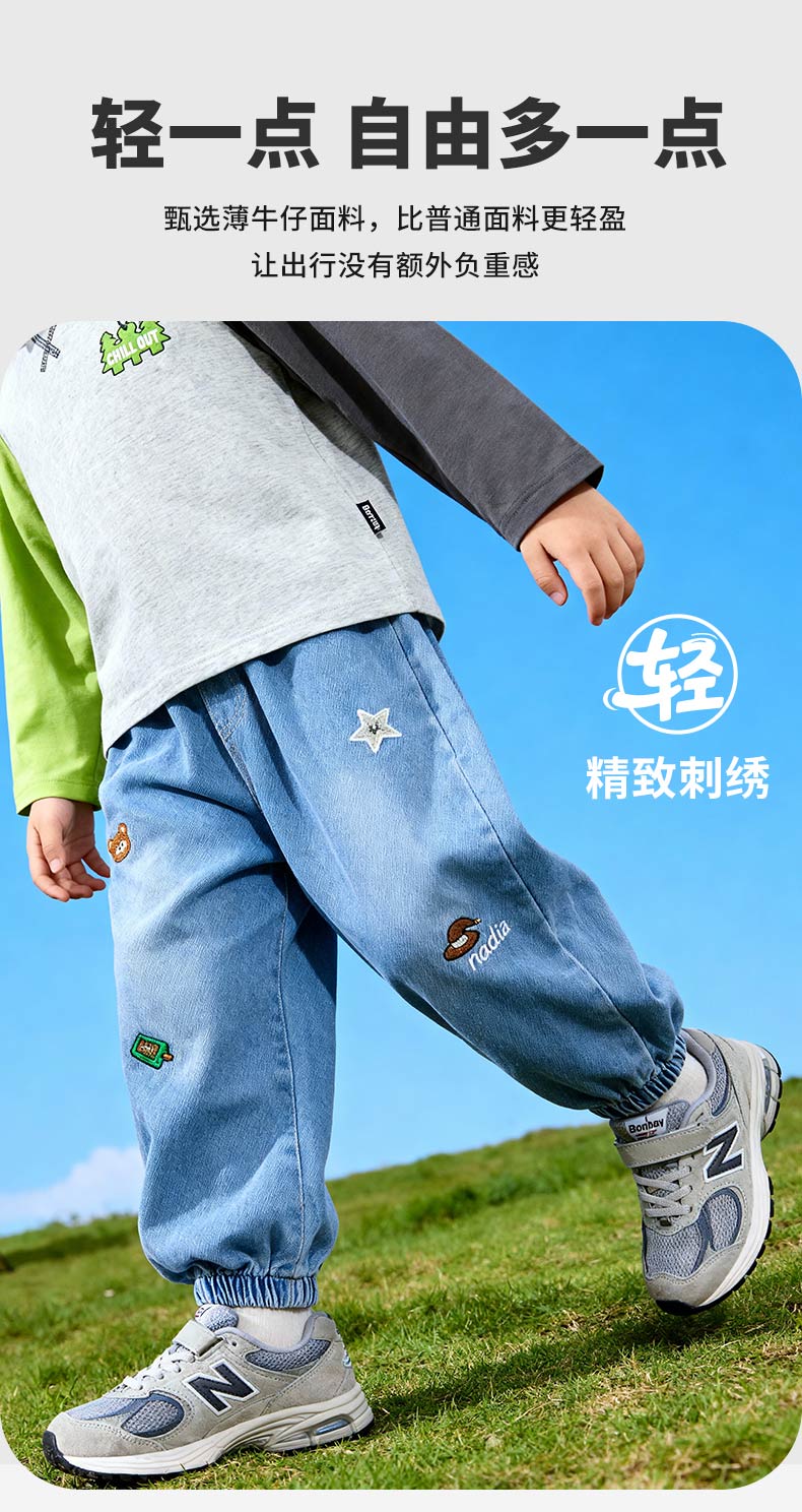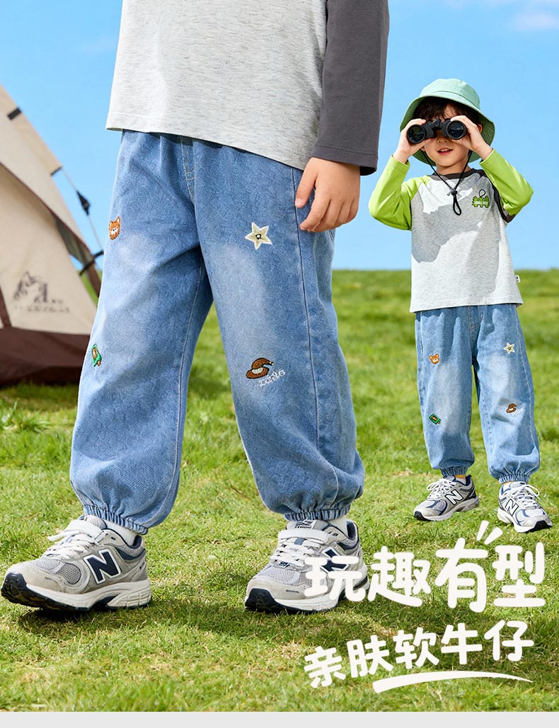 贝贝怡童装儿童牛仔裤男童宽松2026新款春秋长裤中大童水洗软牛仔ZB1FK005