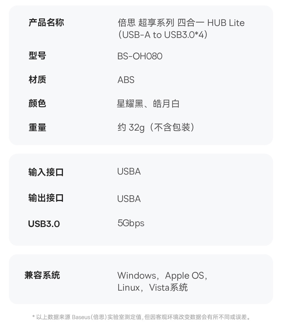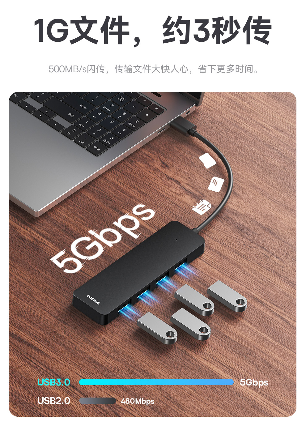【69元3件】倍思 超享系列 四合一 HUB Lite USBA to USB3.0*4