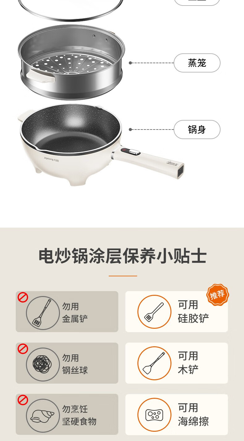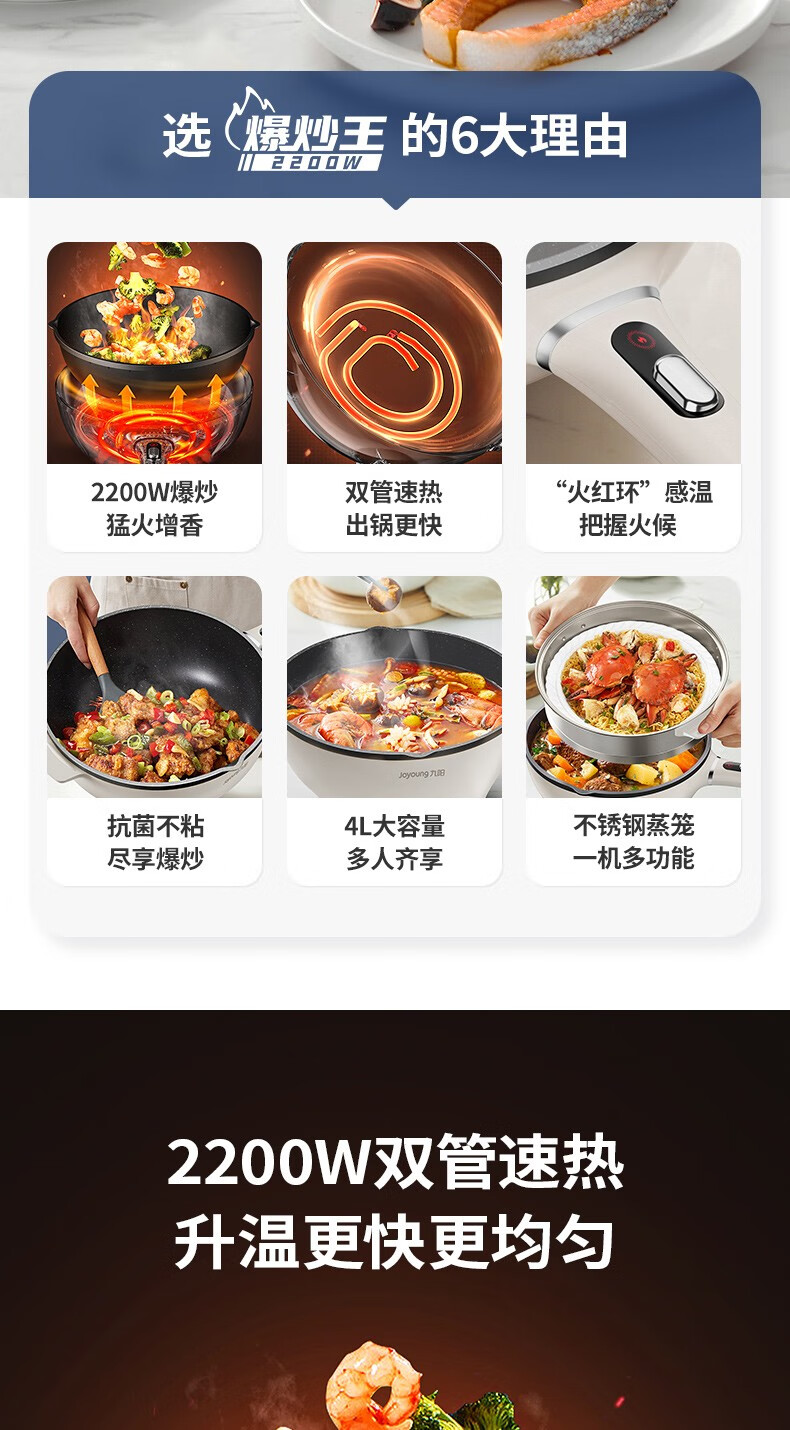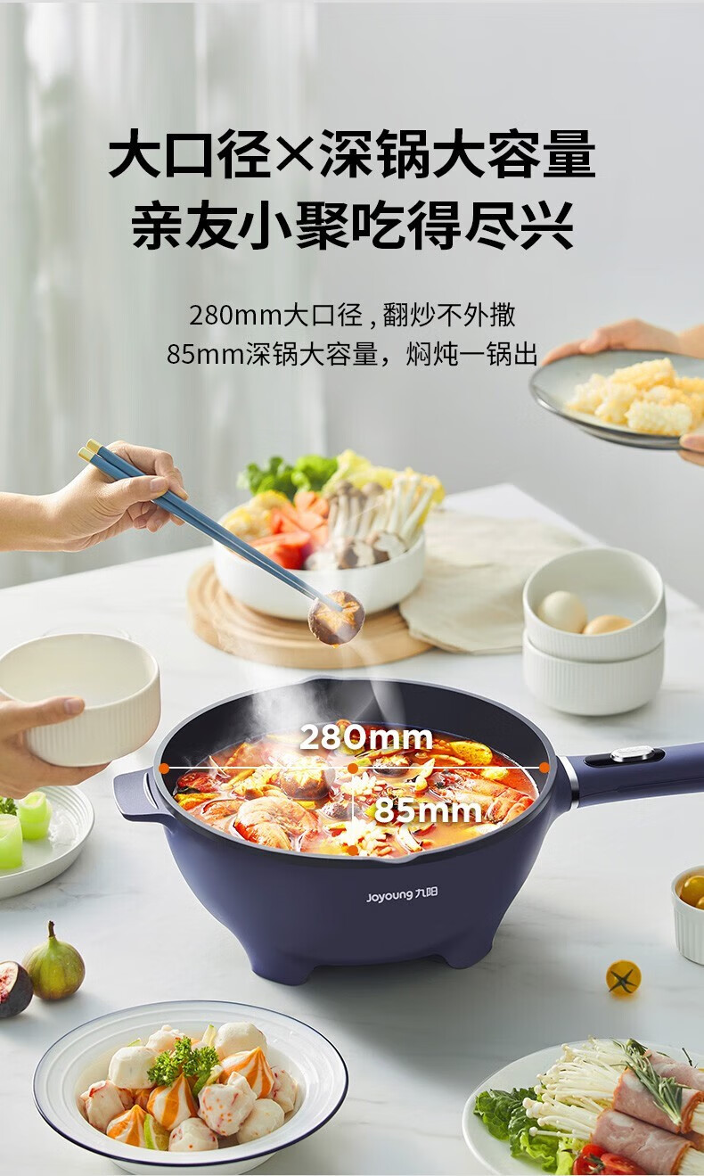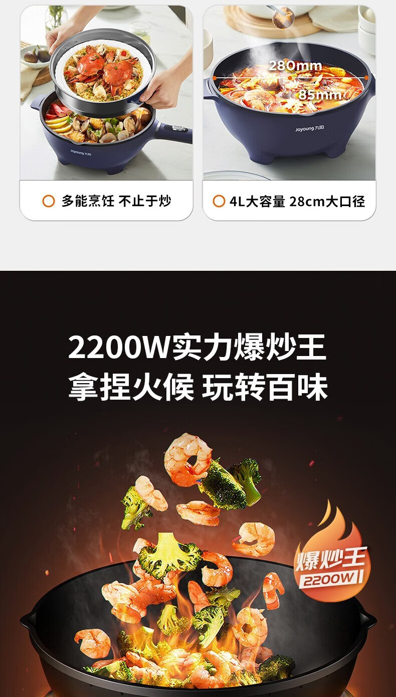 Joyoung/九阳电炒锅4L升电煮锅家用电火锅多用途锅电热锅多功能一体炒菜锅