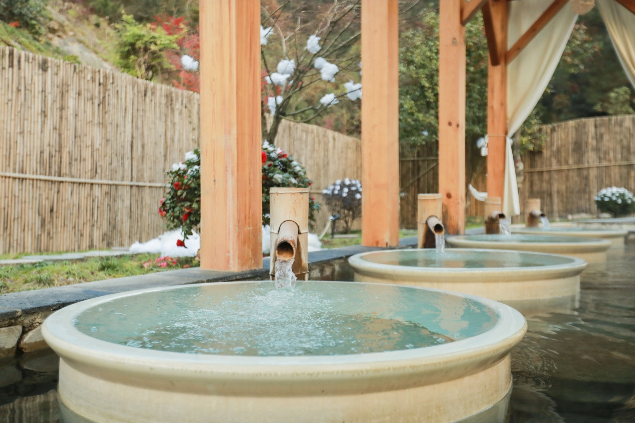 武义璟园汤温泉位于“温泉之城,萤石之乡”——浙江武义。武义温泉水属偏硅酸·氟水,pH值7.4,呈弱碱性。温泉出水口13处,温度在42~45℃,出水量6000吨左右,含有多种对人体有益的微量元素,誉称“浙江第一,华东一流”。