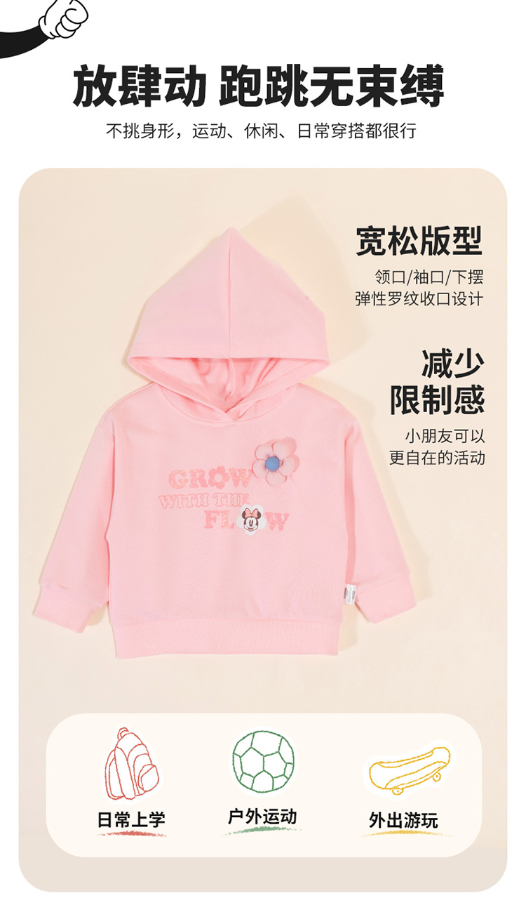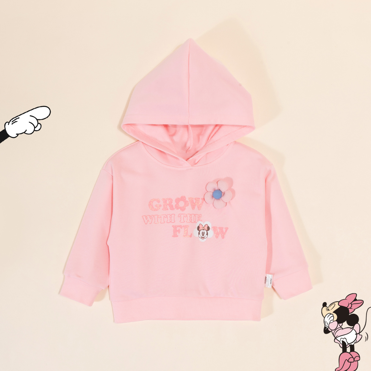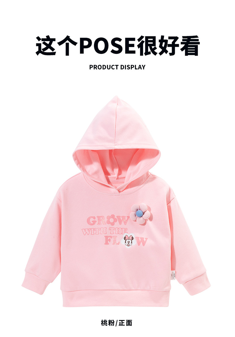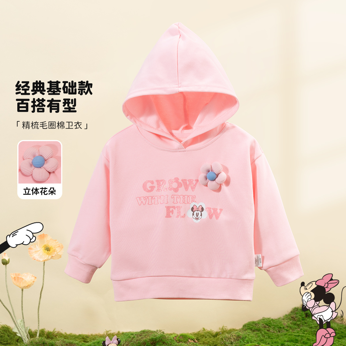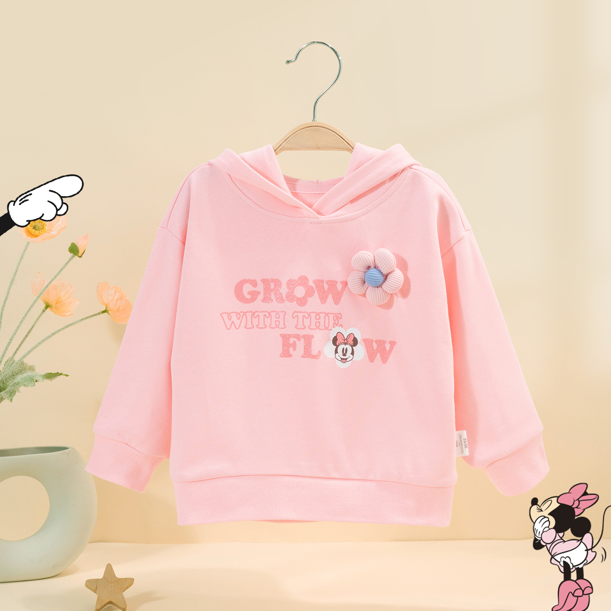 迪士尼童装女童连帽卫衣2024秋季新款甜心花朵米妮宝宝套头上衣ZD3DS003