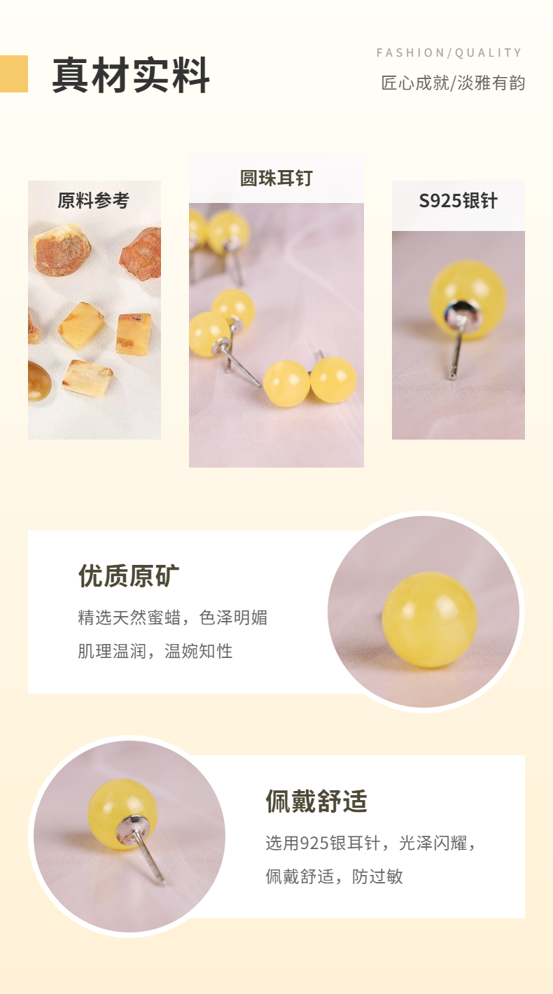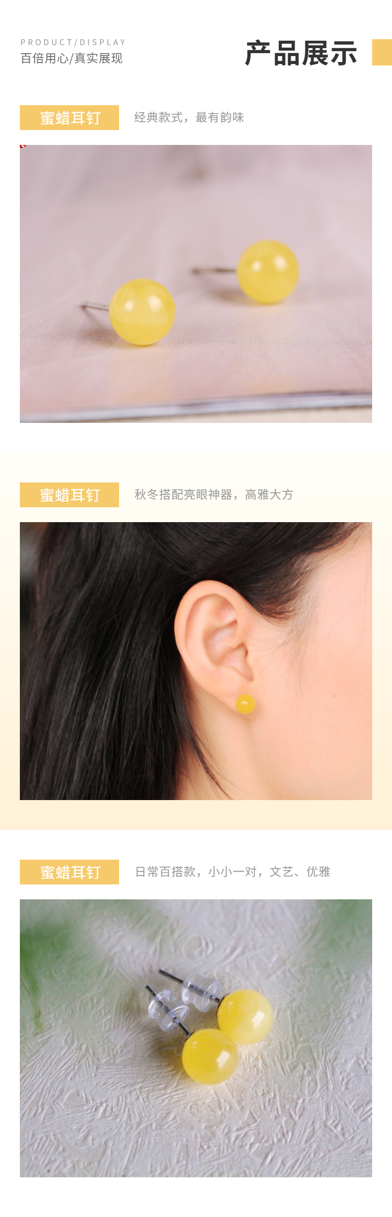[ 秋杏 ] 天然蜜蜡耳钉