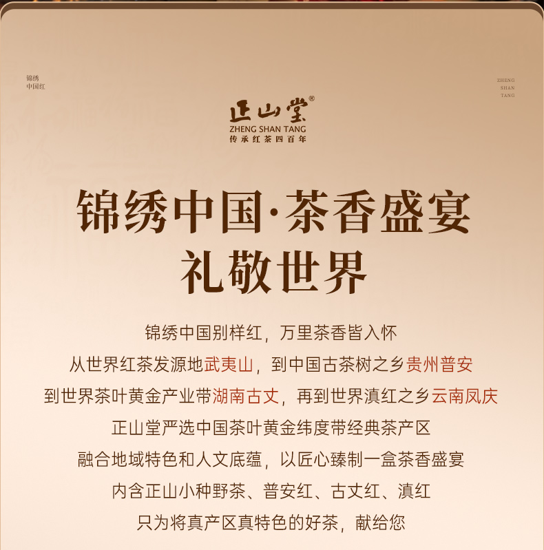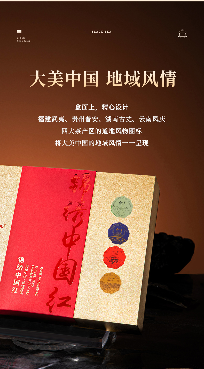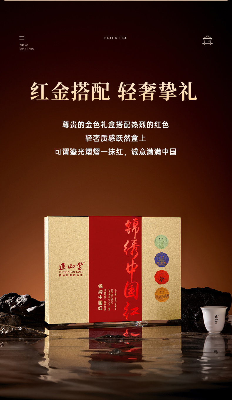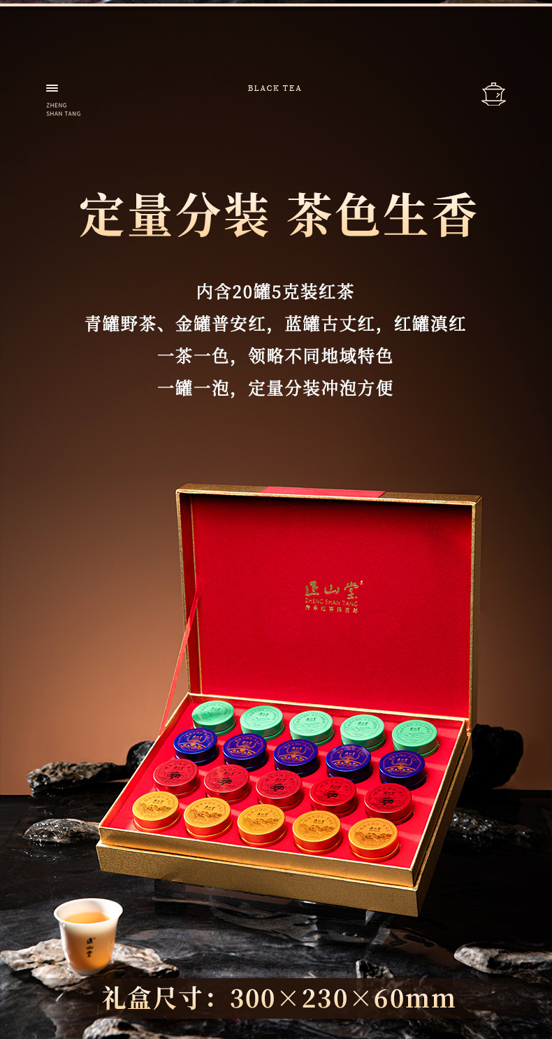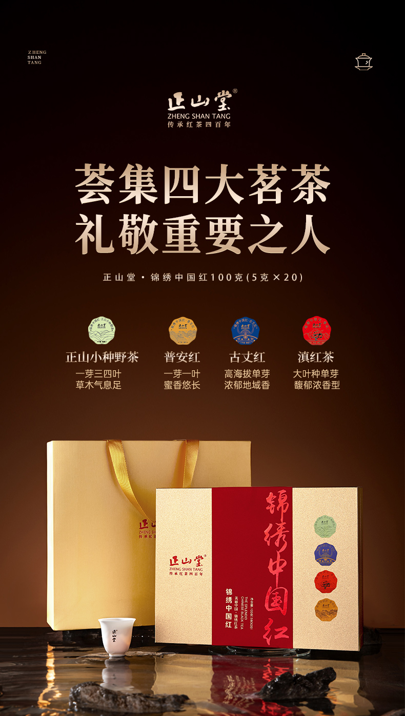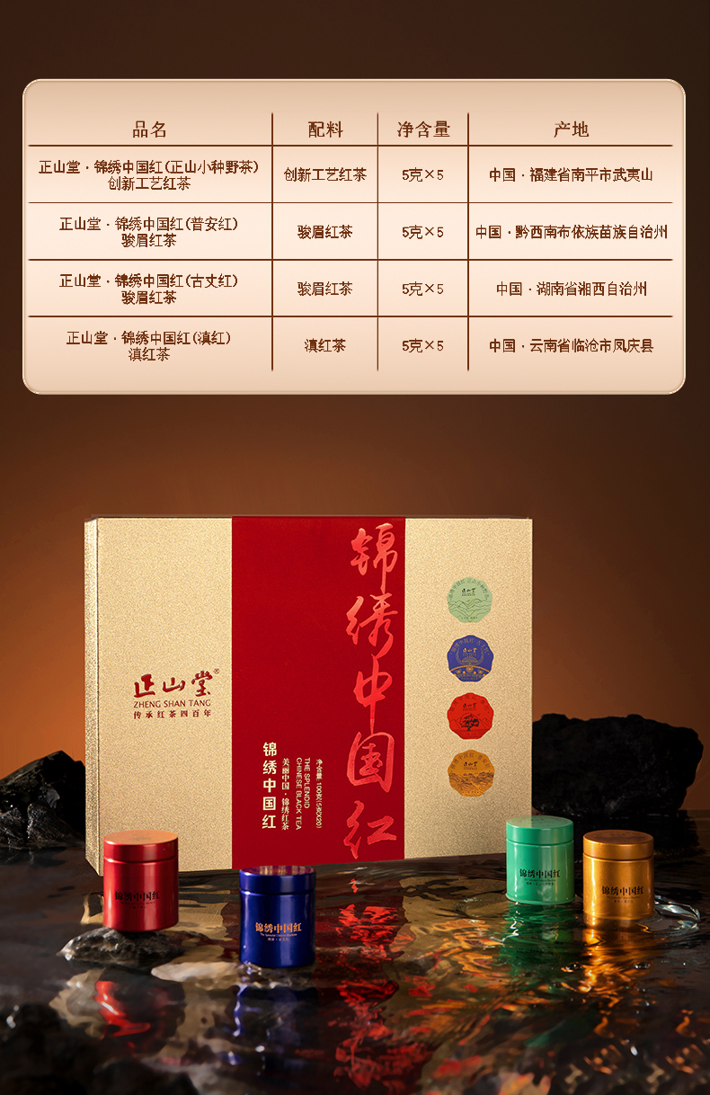 正山堂 锦绣中国红礼盒装 小罐茶特级正山小种野茶滇红茶年货送礼100g
