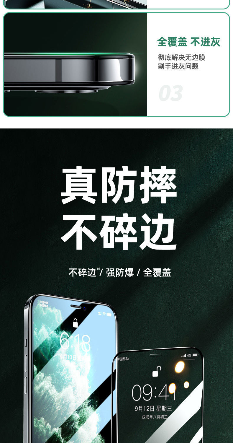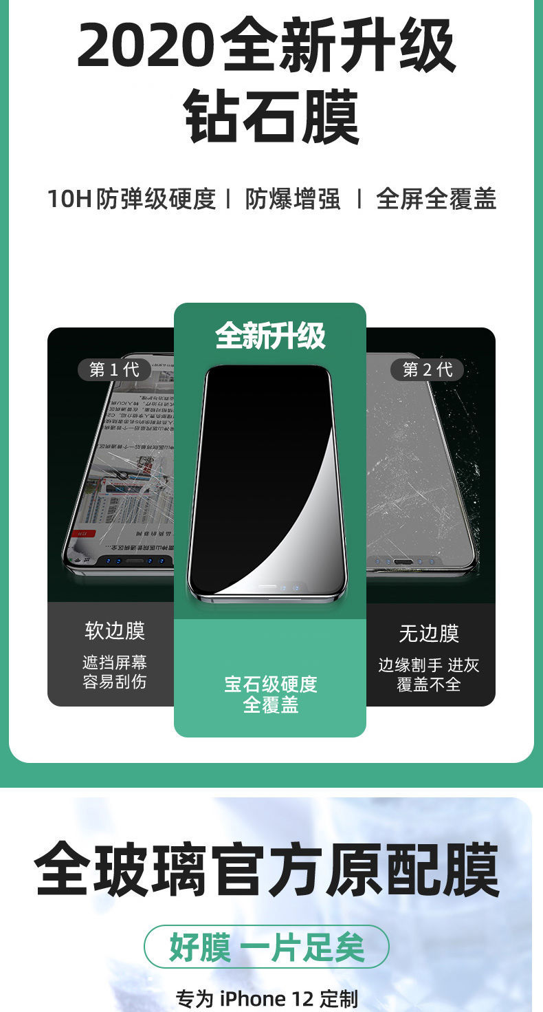 【苹果新9D钢化膜*3片装】苹果11钢化膜12pro防窥iPhone12/6/7/8plus全屏xr/xsmax手机膜壳
