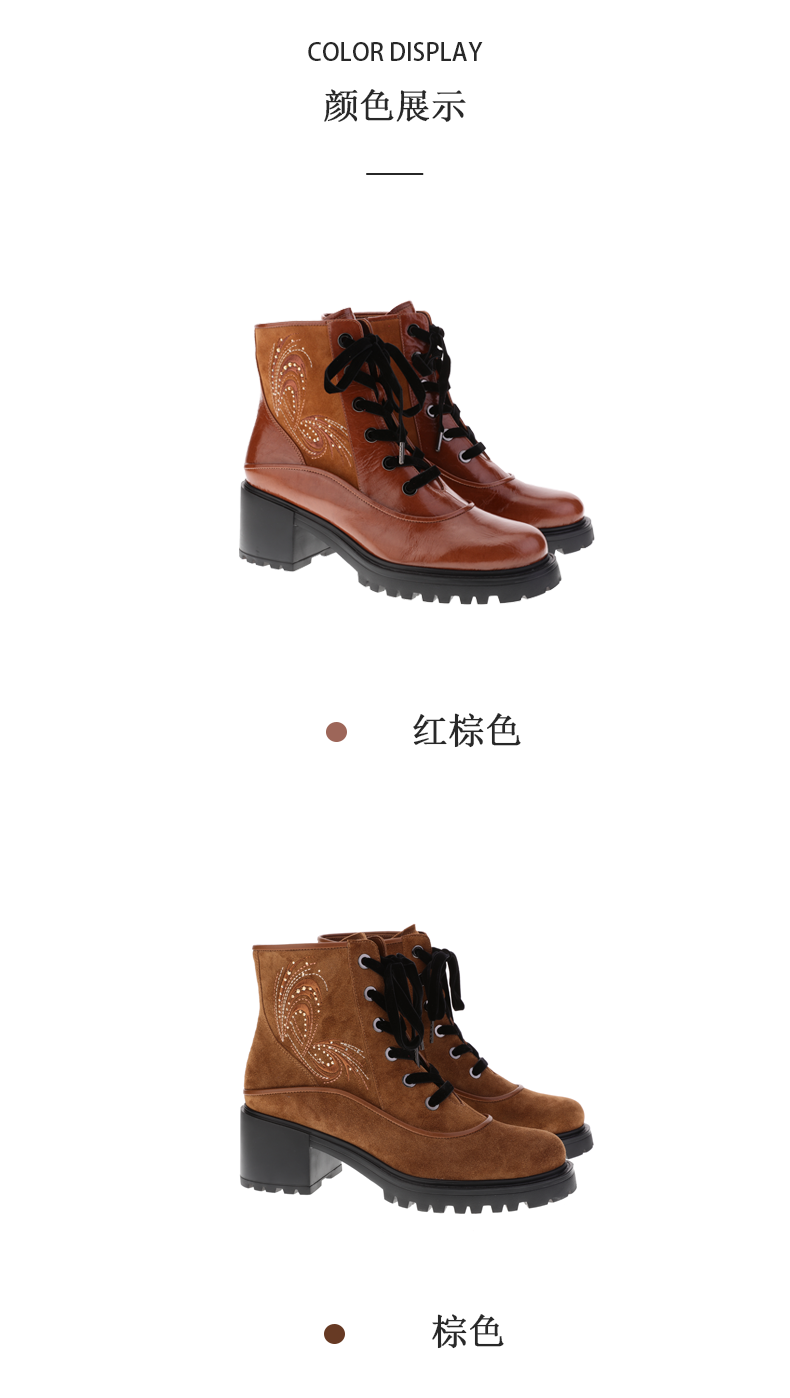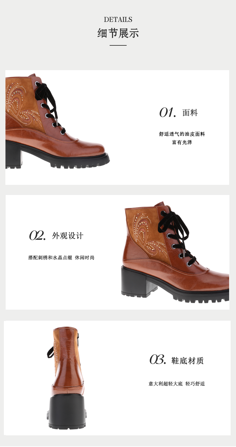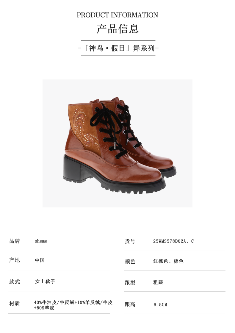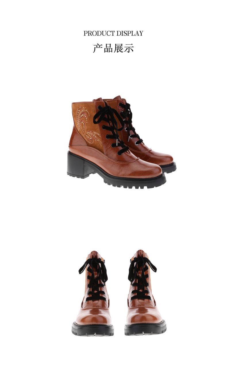 sheme景颇族原创设计刺绣水晶女式粗跟牛皮马丁靴可定制