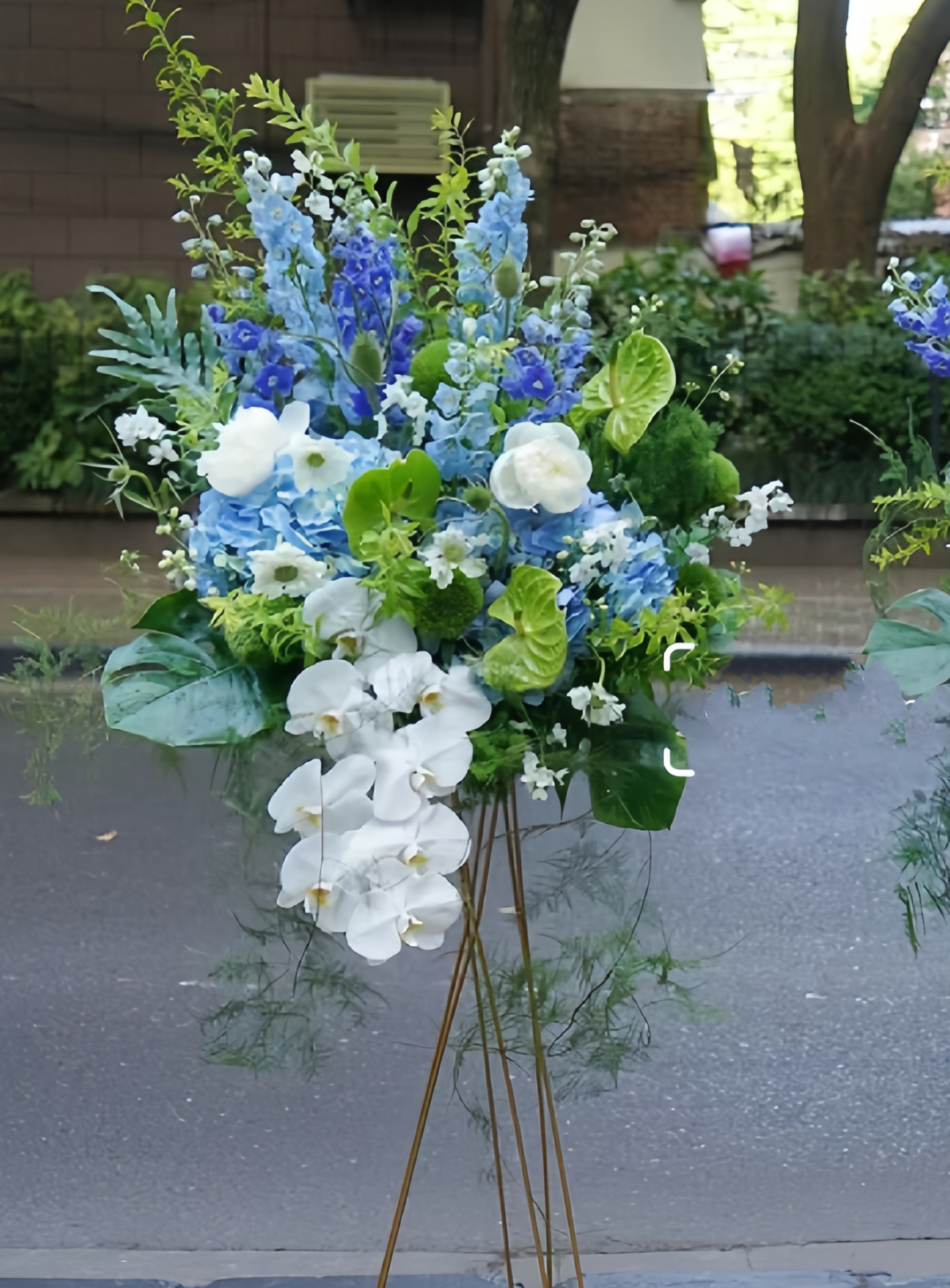 蓝白基调开业大吉——开业花篮高端乔迁庆典商务用花|北京5环内免费送花上门
