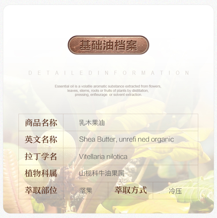 oshadhi德国O家乳木果油 基础油滋润肌肤面部身体按摩油 稀释精油