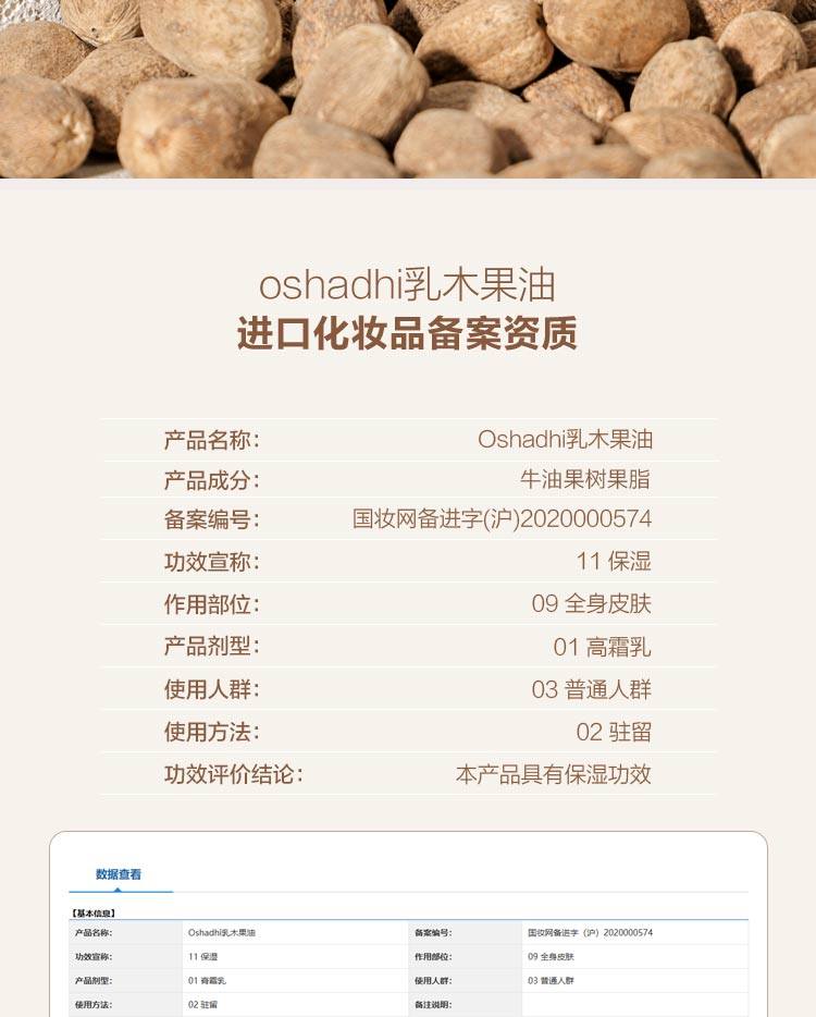oshadhi德国O家乳木果油 基础油面部身体按摩油 稀释精油
