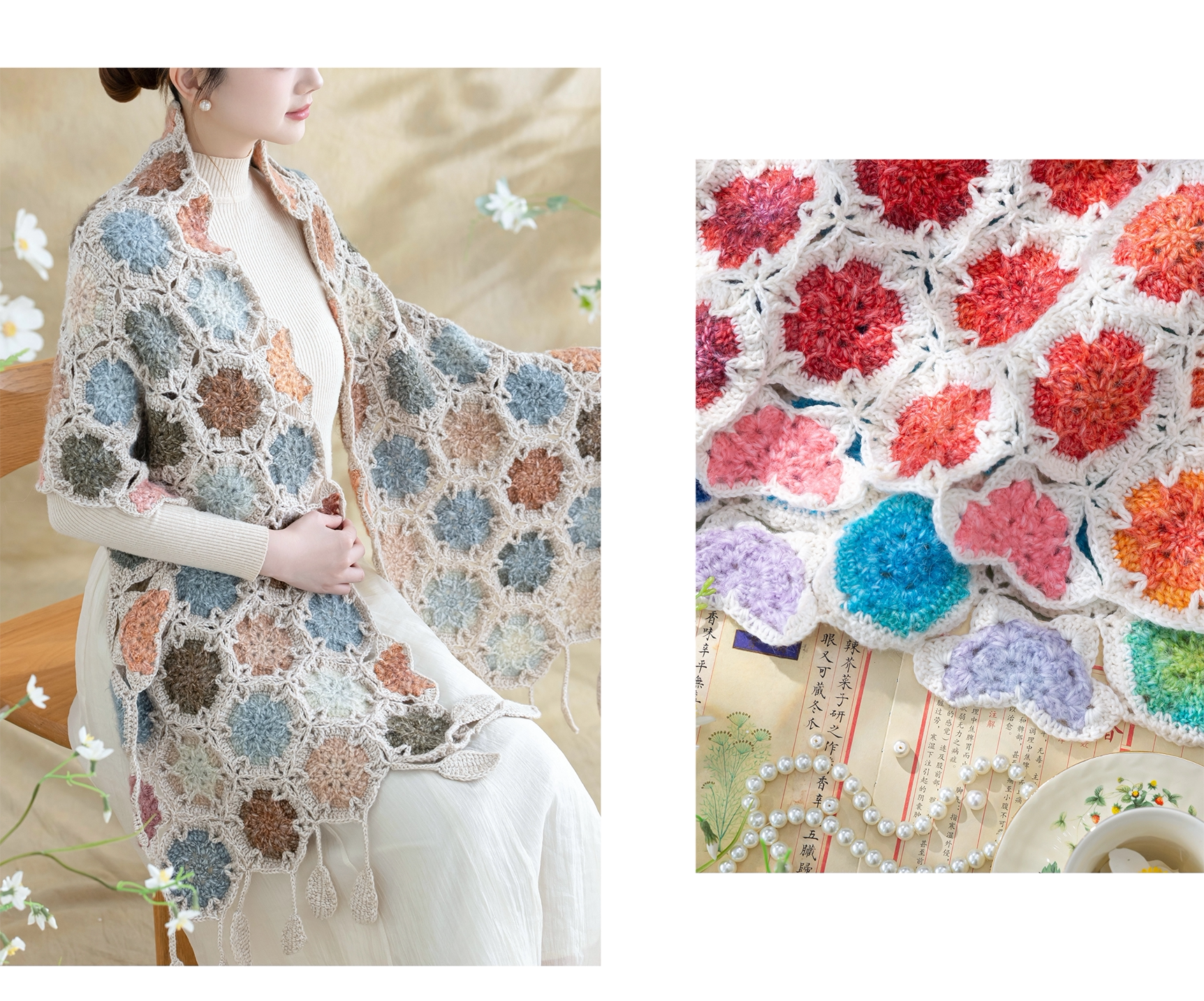 苏苏姐家花间舞大披肩手工DIY编织钩针毛线团自制材料包