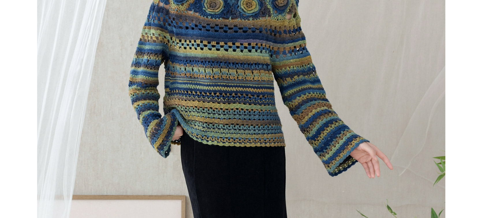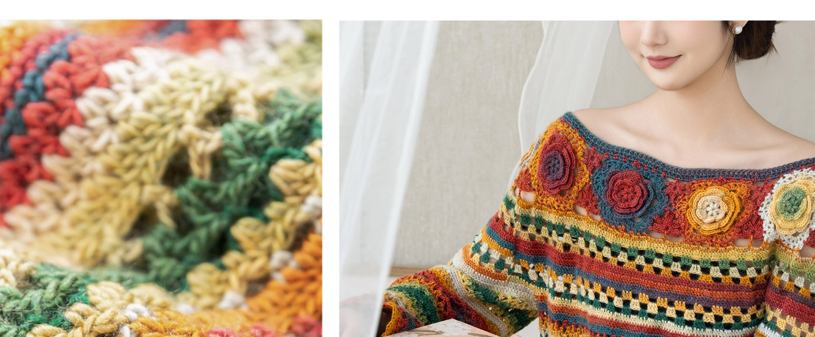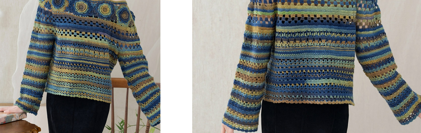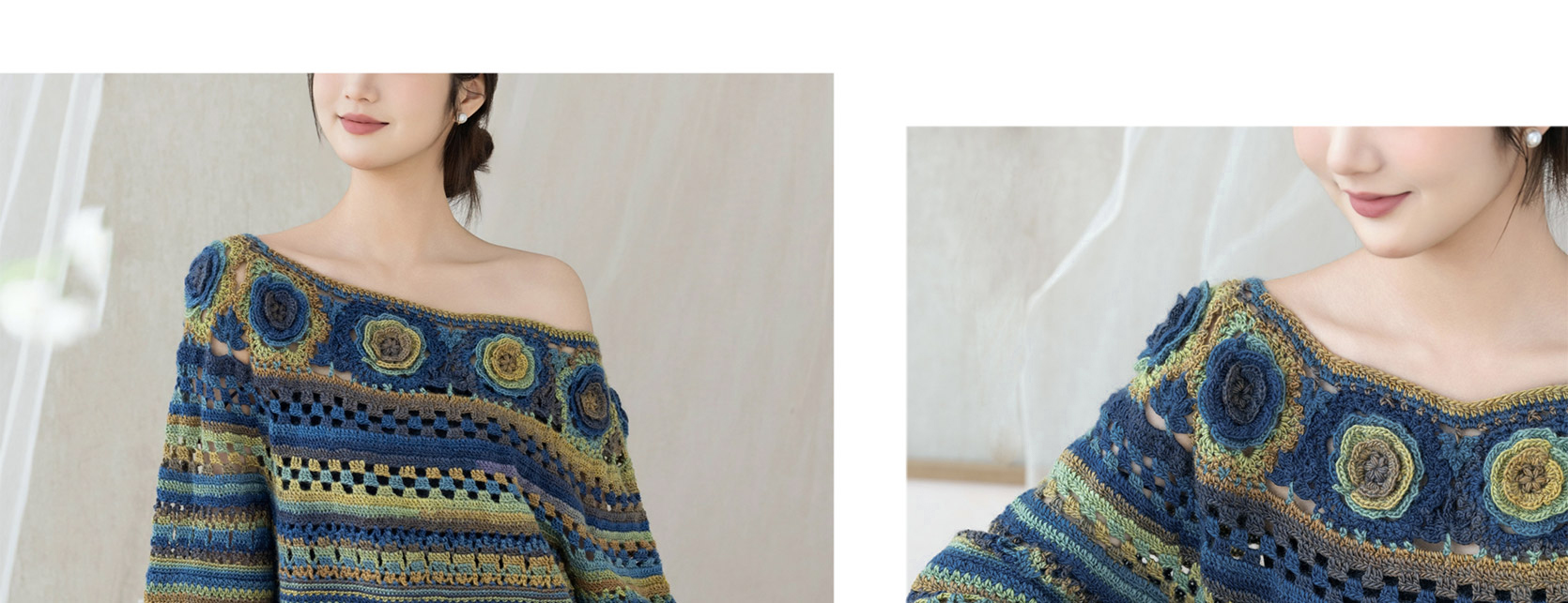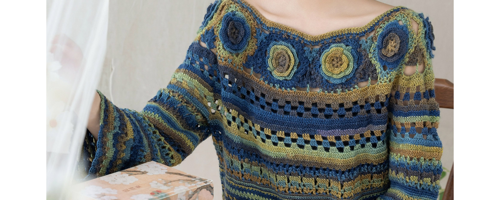 苏苏姐家旧梦一字领上衣手工DIY钩针段染羊毛线衣服毛线材料包