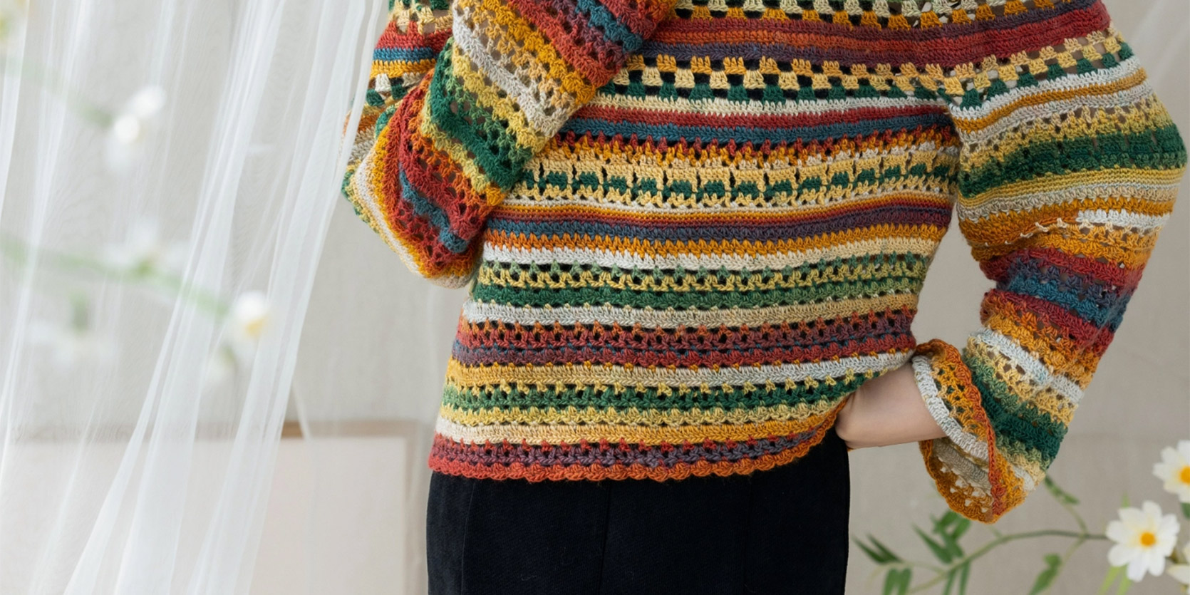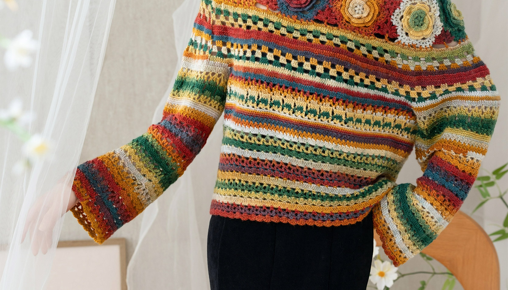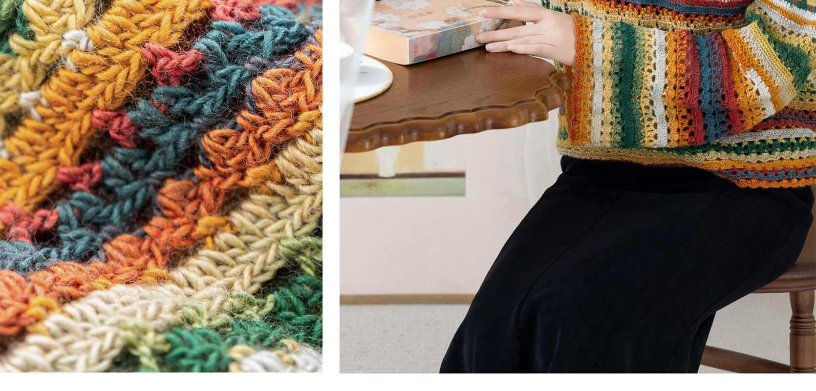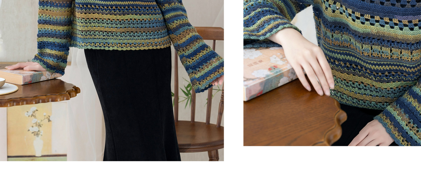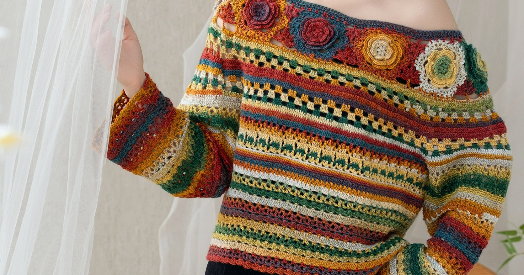 苏苏姐家旧梦一字领上衣手工DIY钩针段染羊毛线衣服毛线材料包