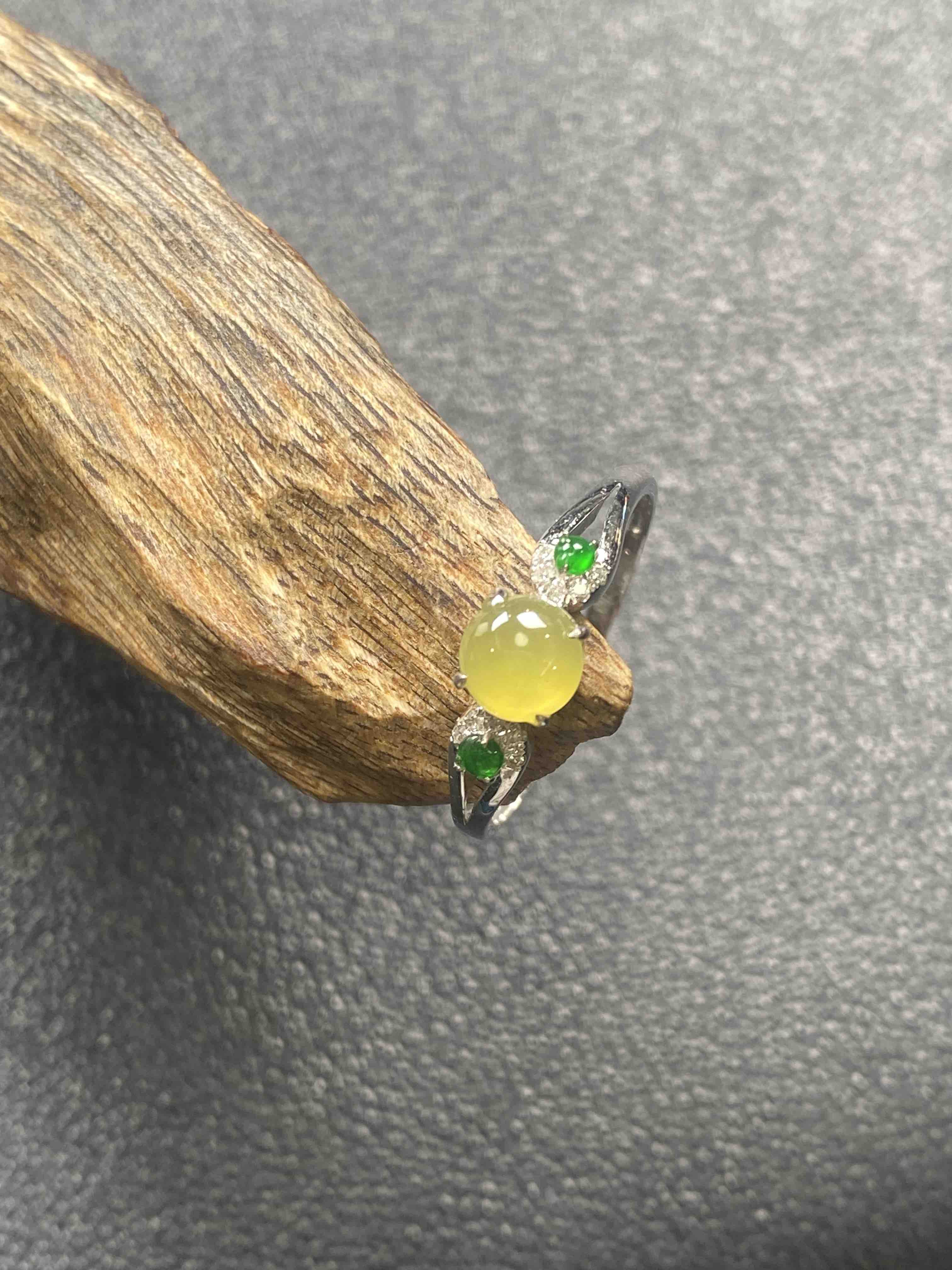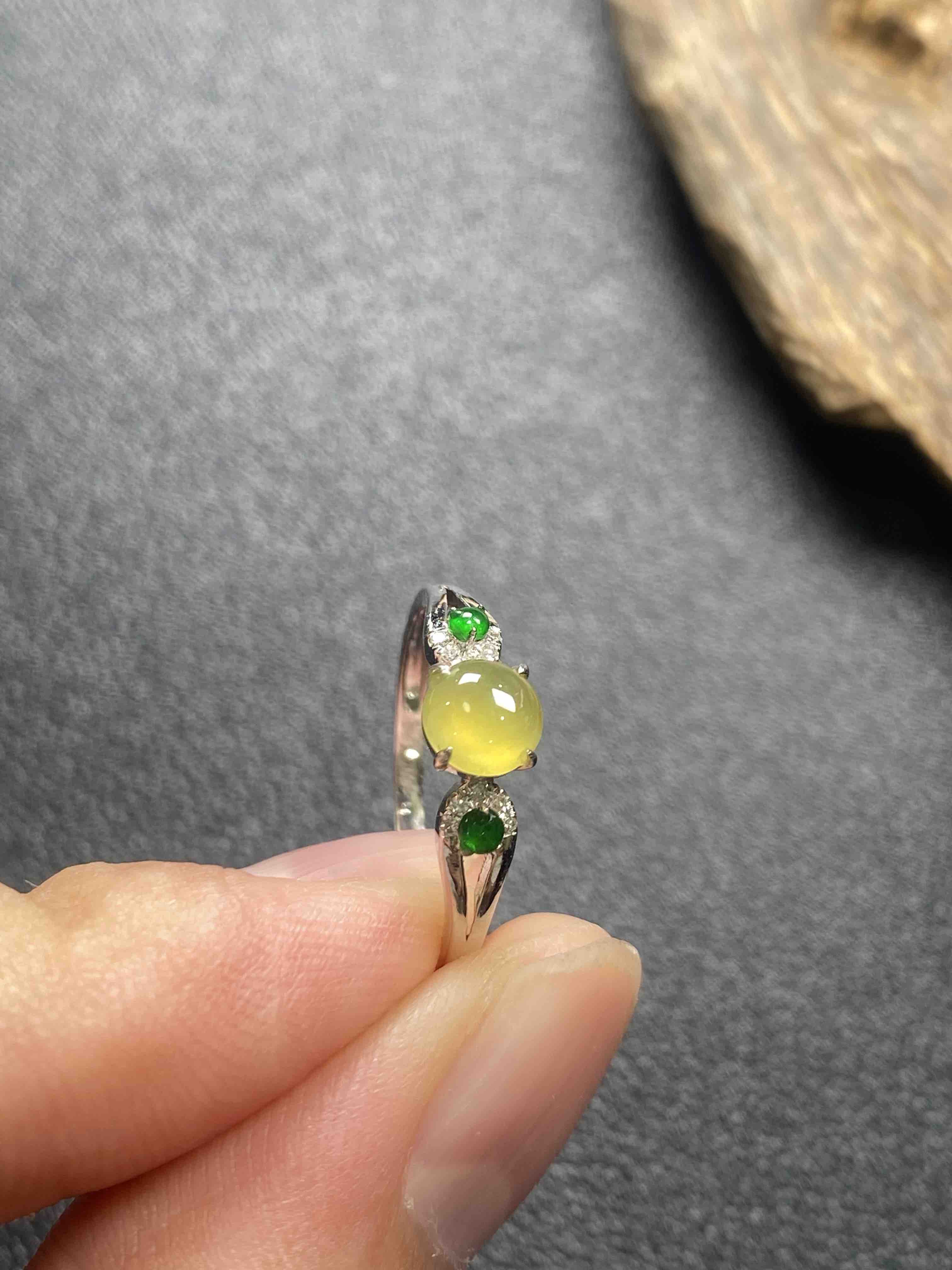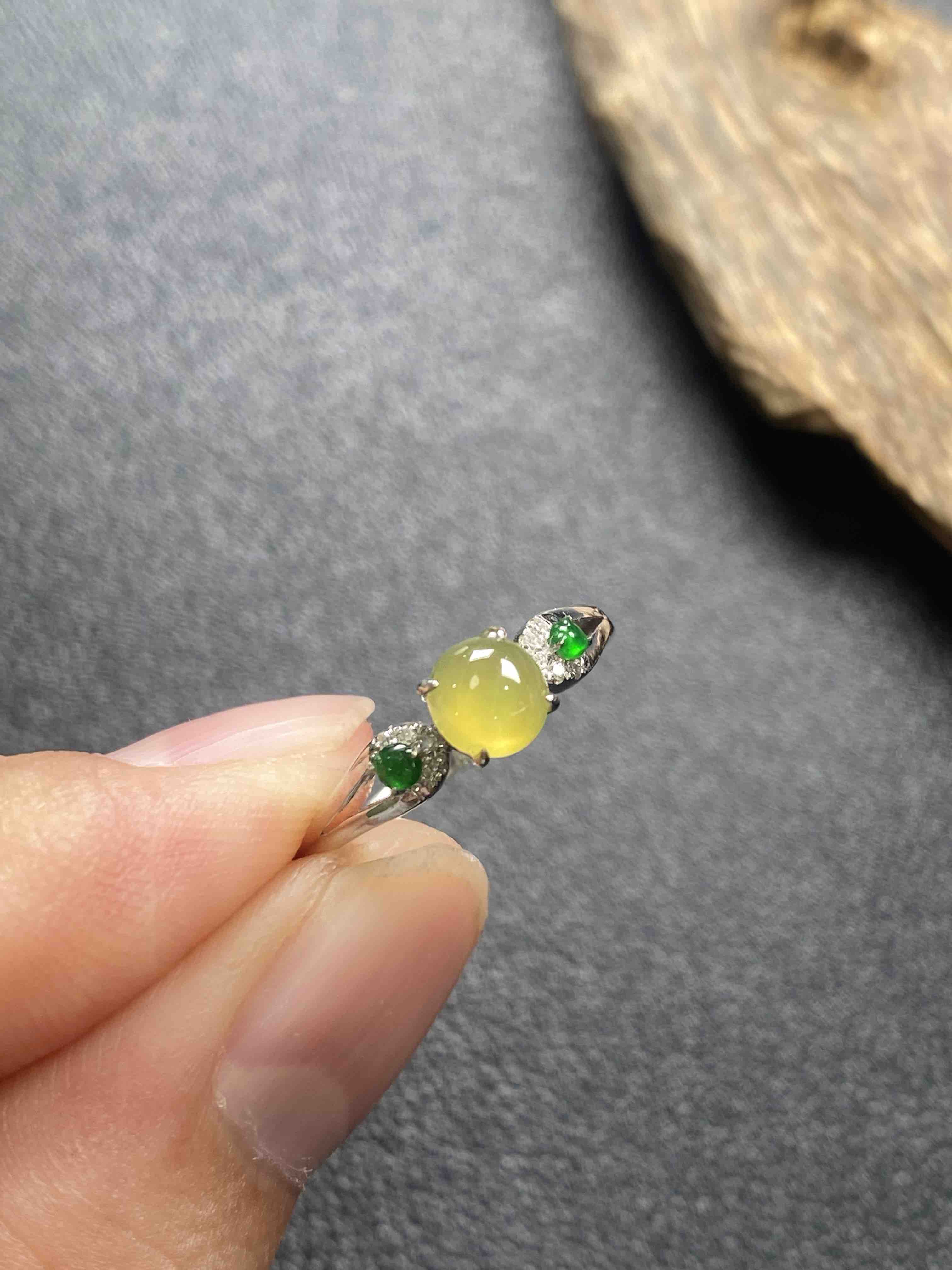 【FC0140】18K镶嵌翡翠冰黄蛋面戒指 色泽清爽 水润起光 款式精致 圈口14