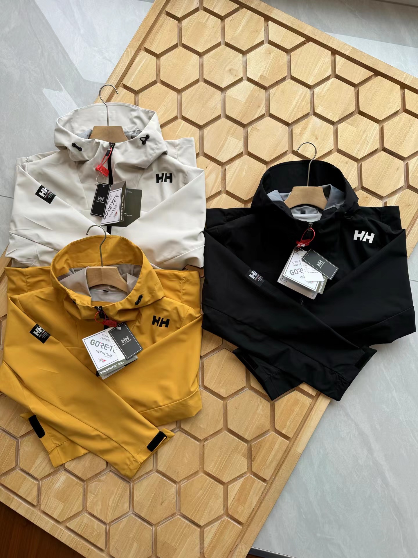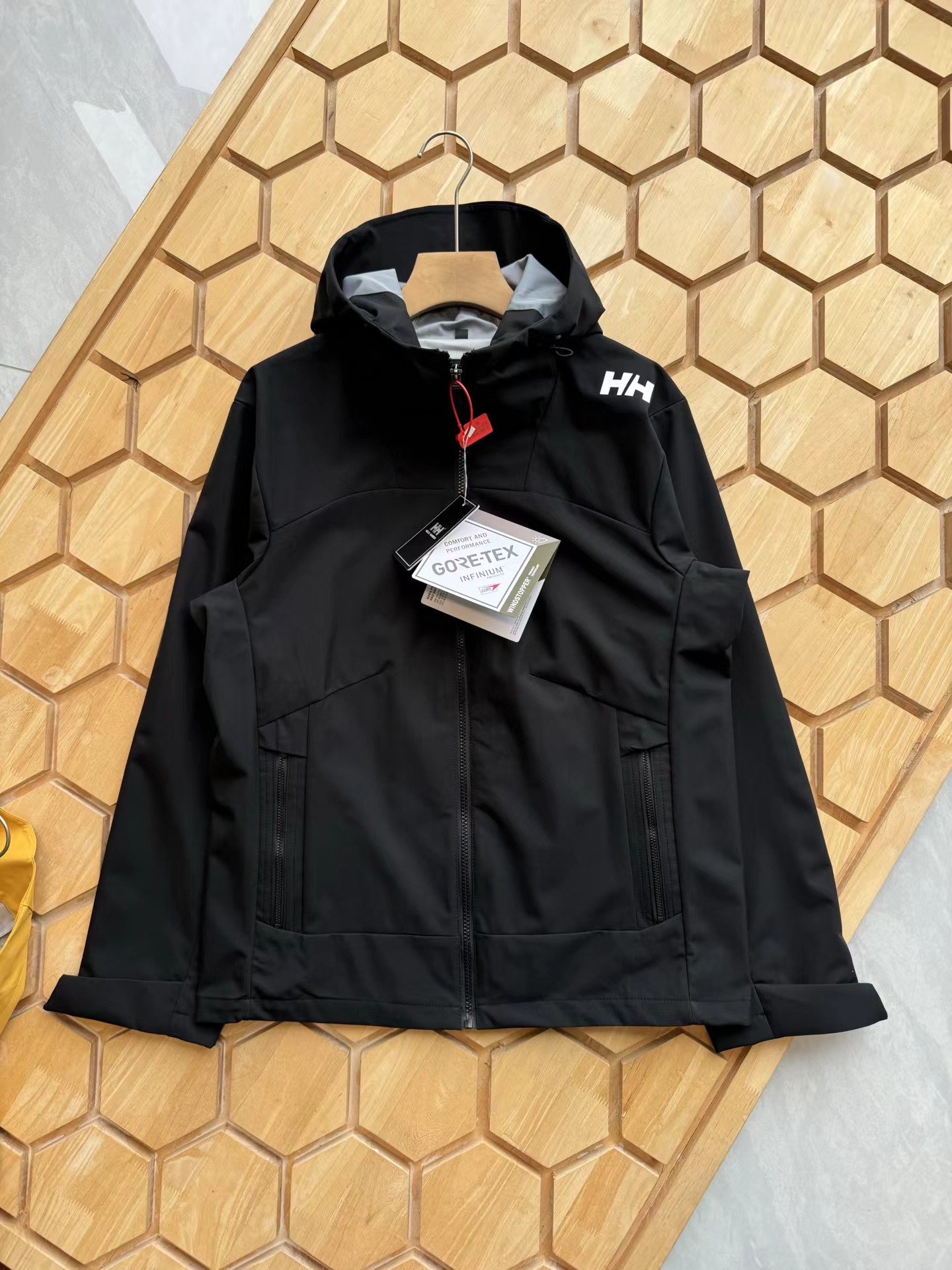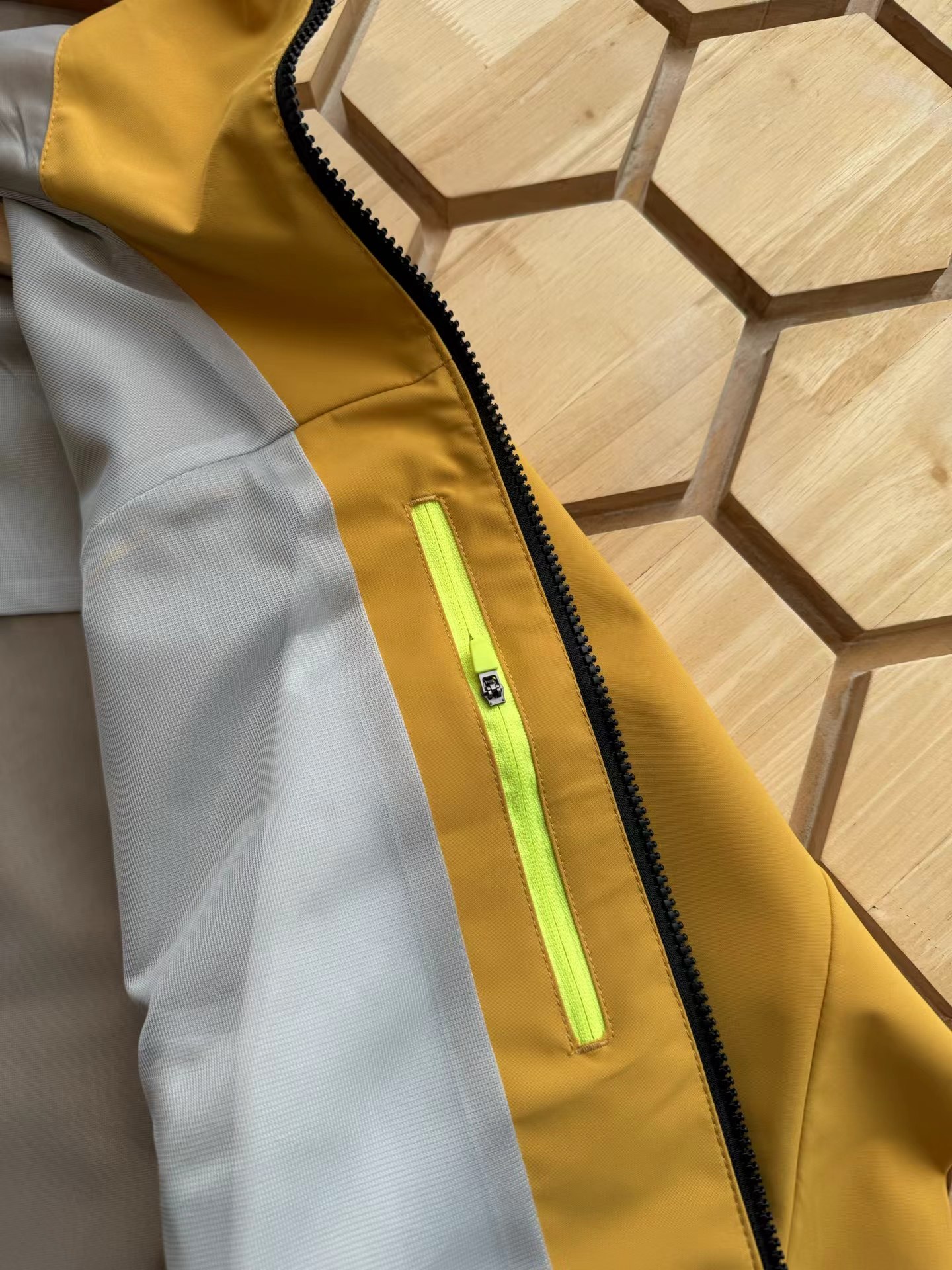 压胶情侣拼接一体防泼水外套,户外防风防水无缝压胶硬壳冲锋衣,专为户外运动人体工学设计,肩膀LOGO设计别具一格,搭配后身航海风格拼接,具有辨识度与时尚性,超多细节彰显旗舰爆款质感格调,高防水透湿科技,通过面料防水性、透气性与拒水性的平衡,有效应对强风雨等多变天气及户外恶劣环境,减少闷热感,提高内部的舒适度,Bemis35L胶带层压结构,所有接缝全封闭式防水,100防水防风性能,为户外运动登山徒步提供更舒适体验,采用两侧拉链口袋,更具便利性和美观度,领子顶端,袖口,后身多处点缀,增加户外辨识度和安全性,袖头魔术贴采用激光剪裁+嵌入式固定,底边调节系统,拒绝寒风侵入,喜欢的兄弟赶紧入手!