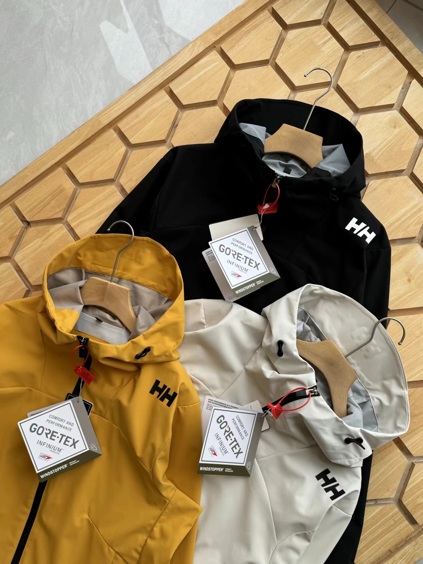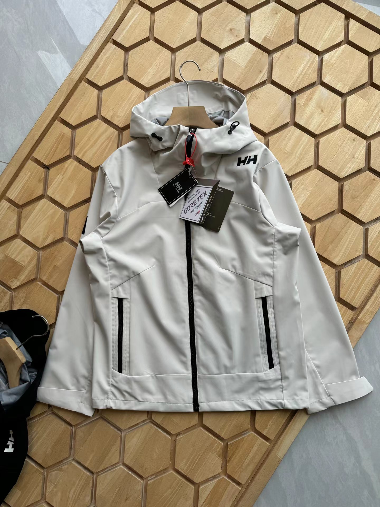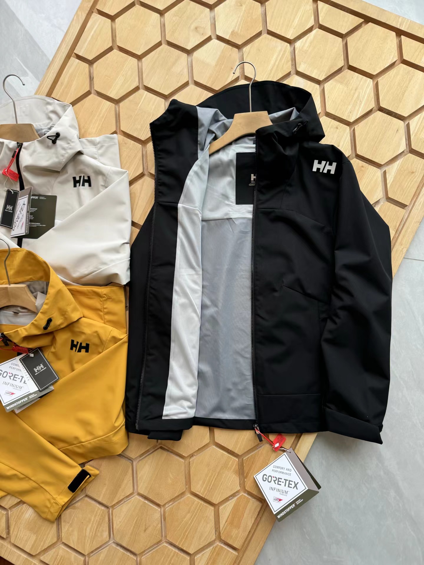 压胶情侣拼接一体防泼水外套,户外防风防水无缝压胶硬壳冲锋衣,专为户外运动人体工学设计,肩膀LOGO设计别具一格,搭配后身航海风格拼接,具有辨识度与时尚性,超多细节彰显旗舰爆款质感格调,高防水透湿科技,通过面料防水性、透气性与拒水性的平衡,有效应对强风雨等多变天气及户外恶劣环境,减少闷热感,提高内部的舒适度,Bemis35L胶带层压结构,所有接缝全封闭式防水,100防水防风性能,为户外运动登山徒步提供更舒适体验,采用两侧拉链口袋,更具便利性和美观度,领子顶端,袖口,后身多处点缀,增加户外辨识度和安全性,袖头魔术贴采用激光剪裁+嵌入式固定,底边调节系统,拒绝寒风侵入,喜欢的兄弟赶紧入手!
