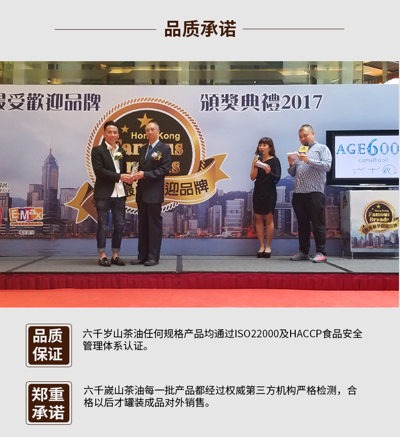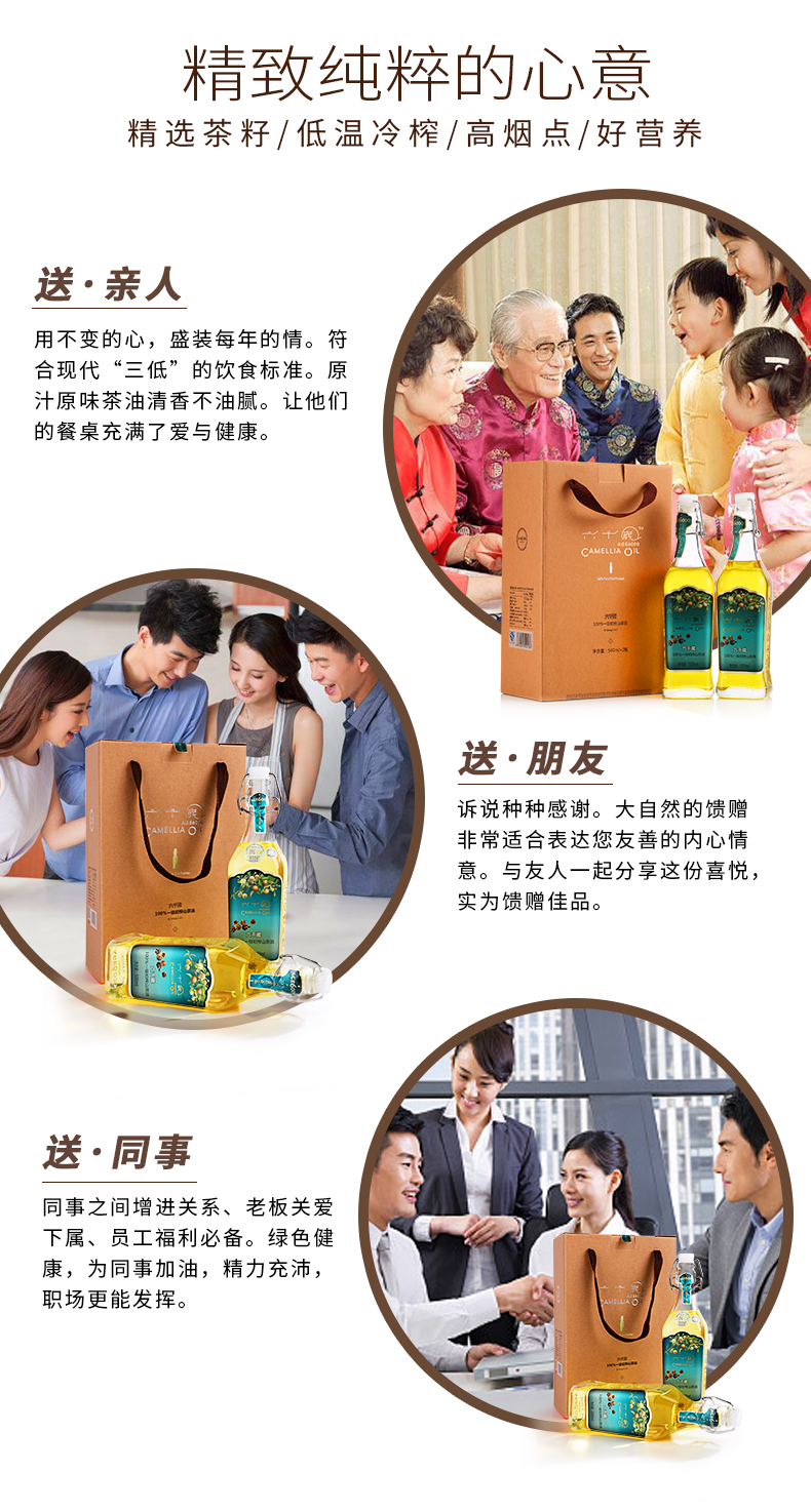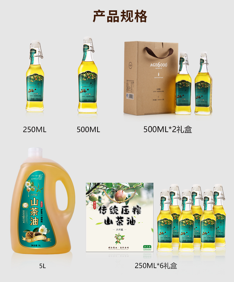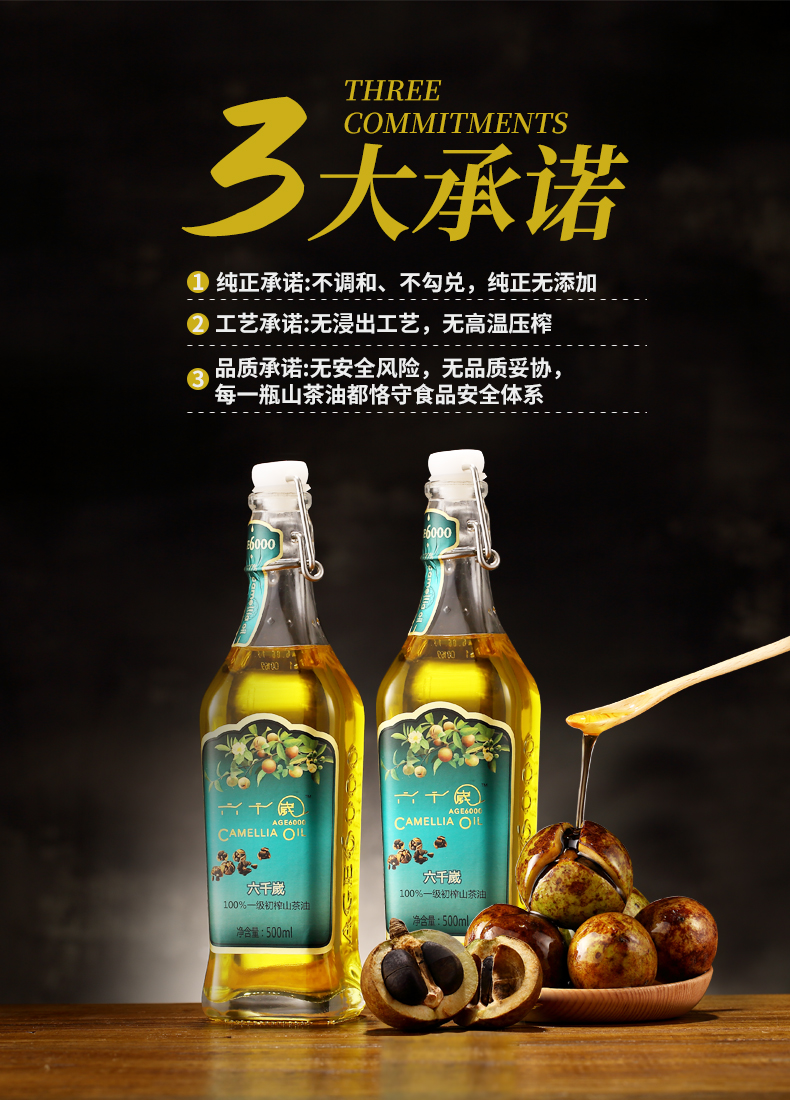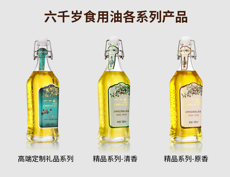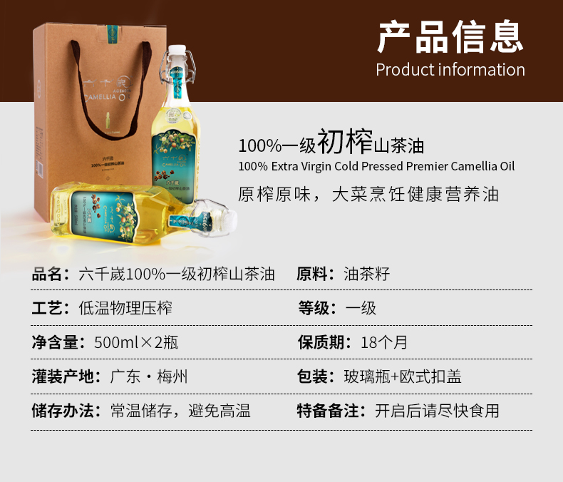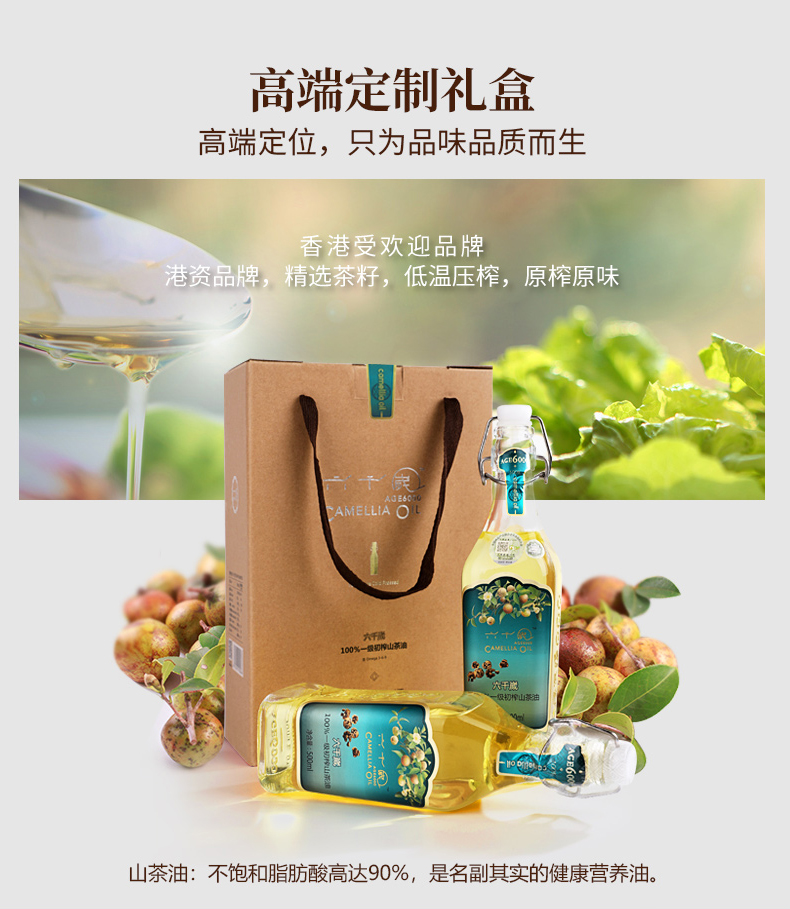 香港最受欢迎品牌 送礼佳品-健康营养油 六千嵗一级初榨山茶油 礼盒装500ML*2