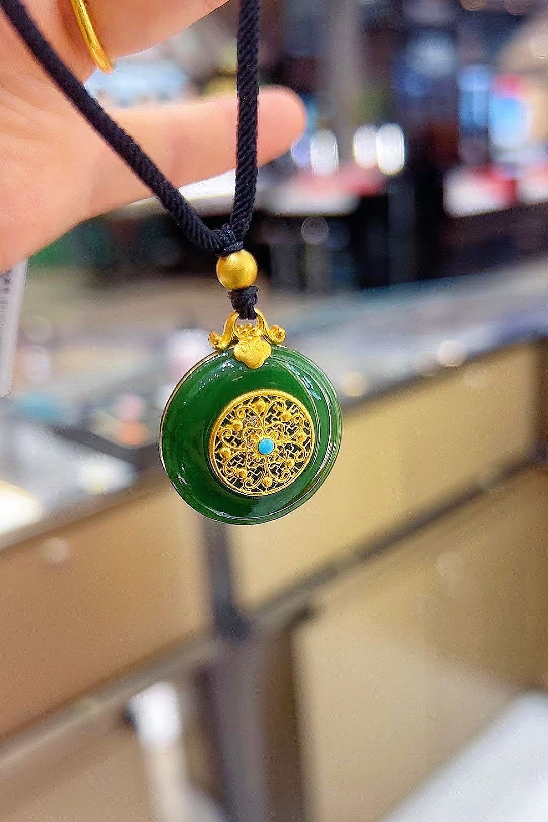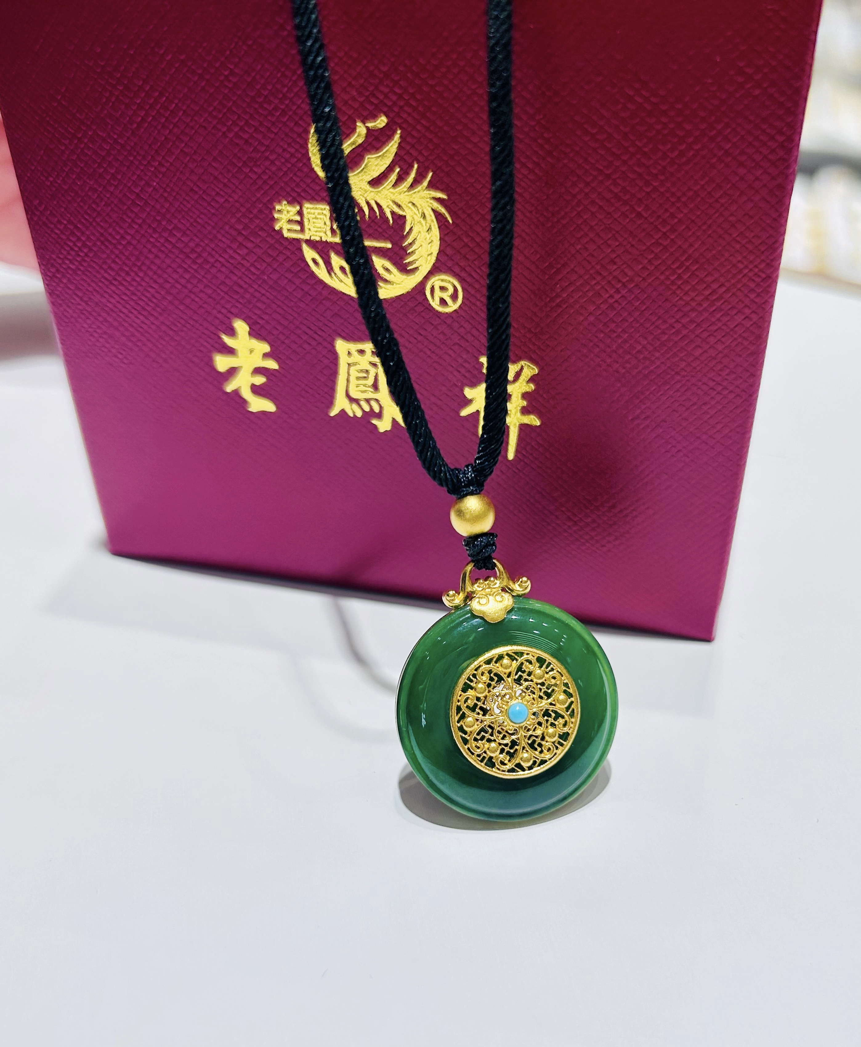 2楼老凤祥足金999镶和田碧玉挂件 吊牌价19740 活动价15808