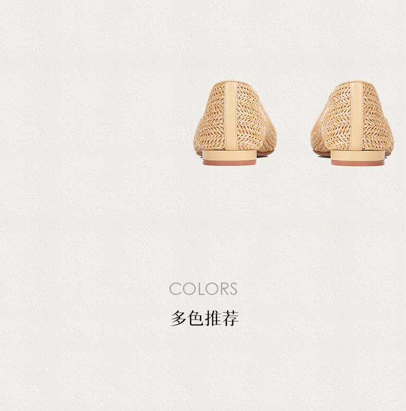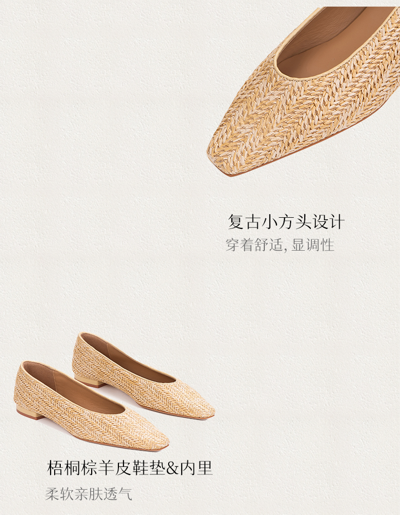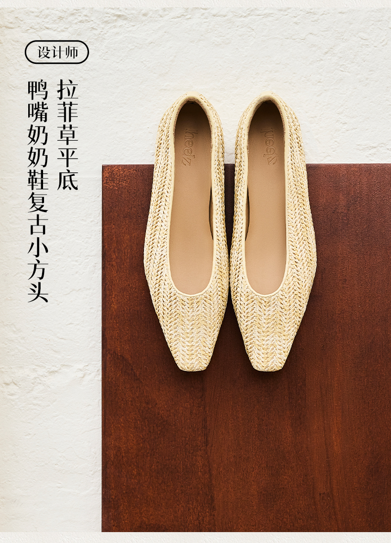 heelz设计师手工鞋履 |拉菲草平底鸭嘴奶奶鞋复古小方头 1.5公分