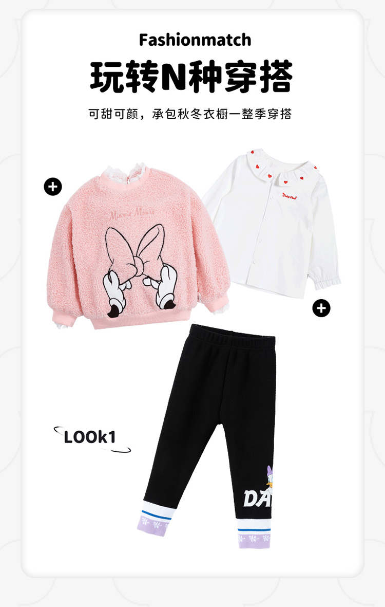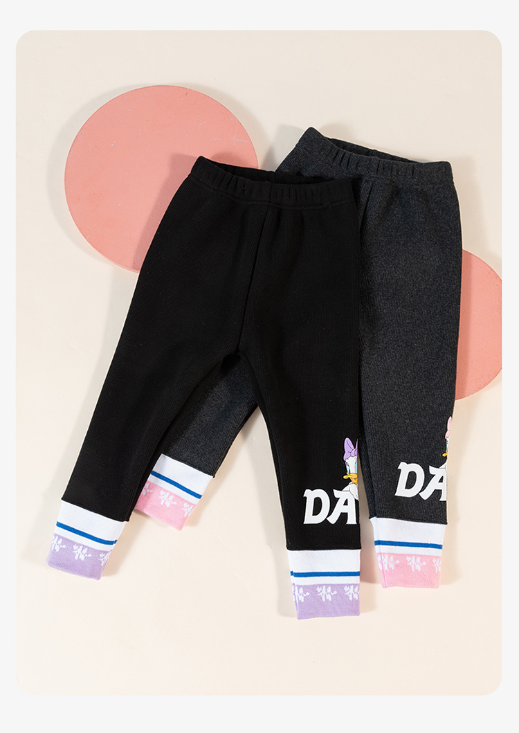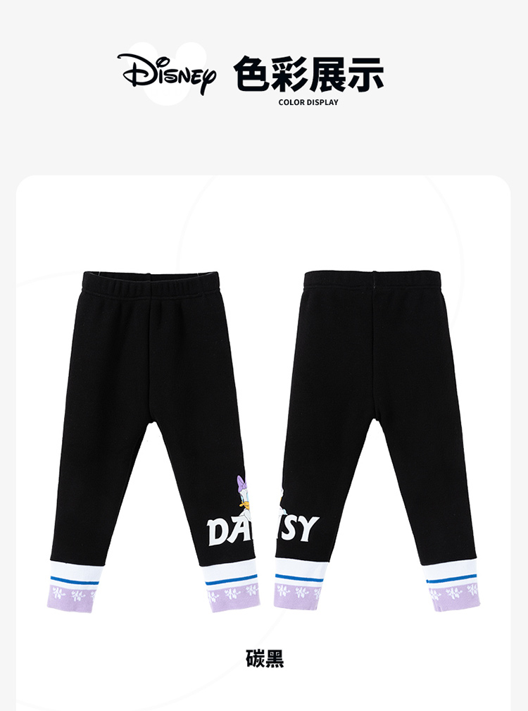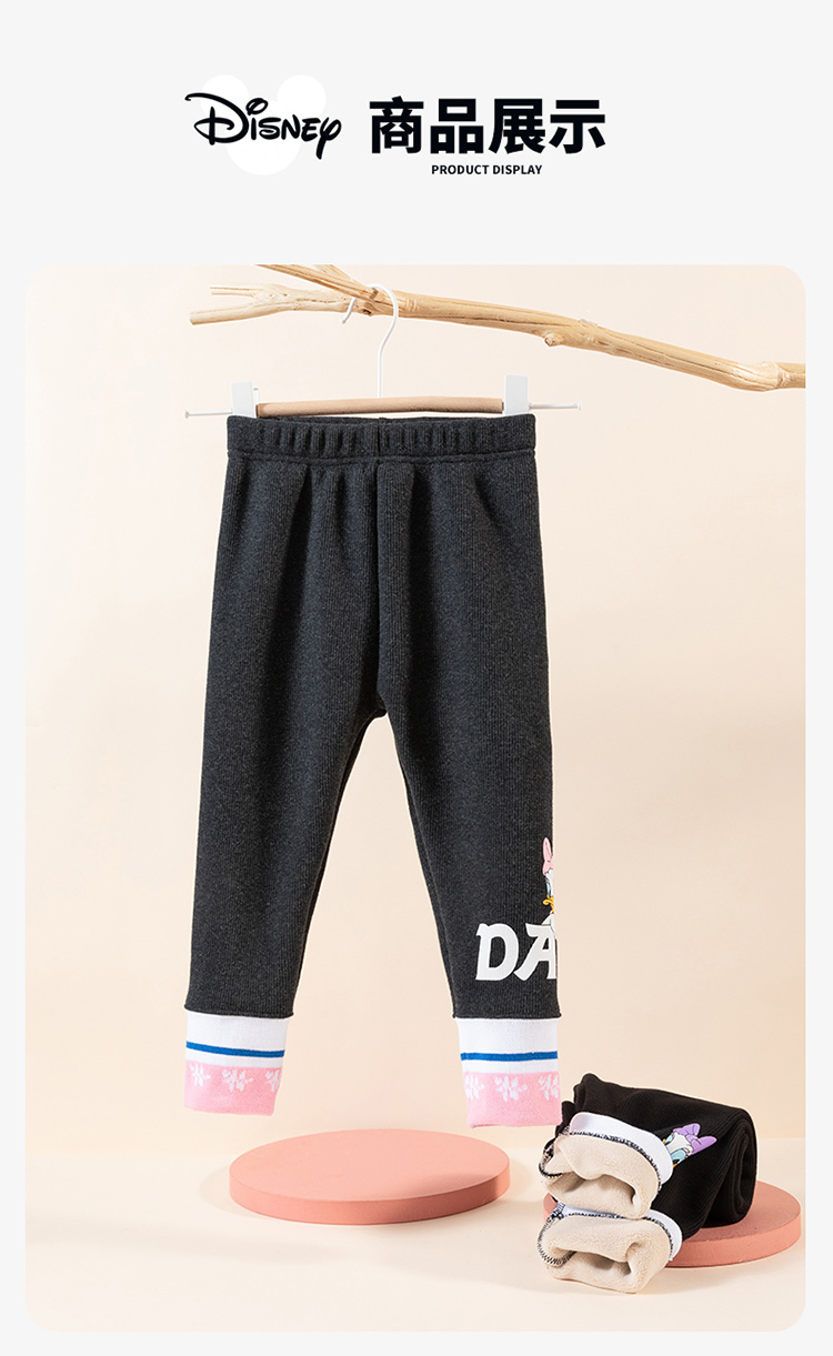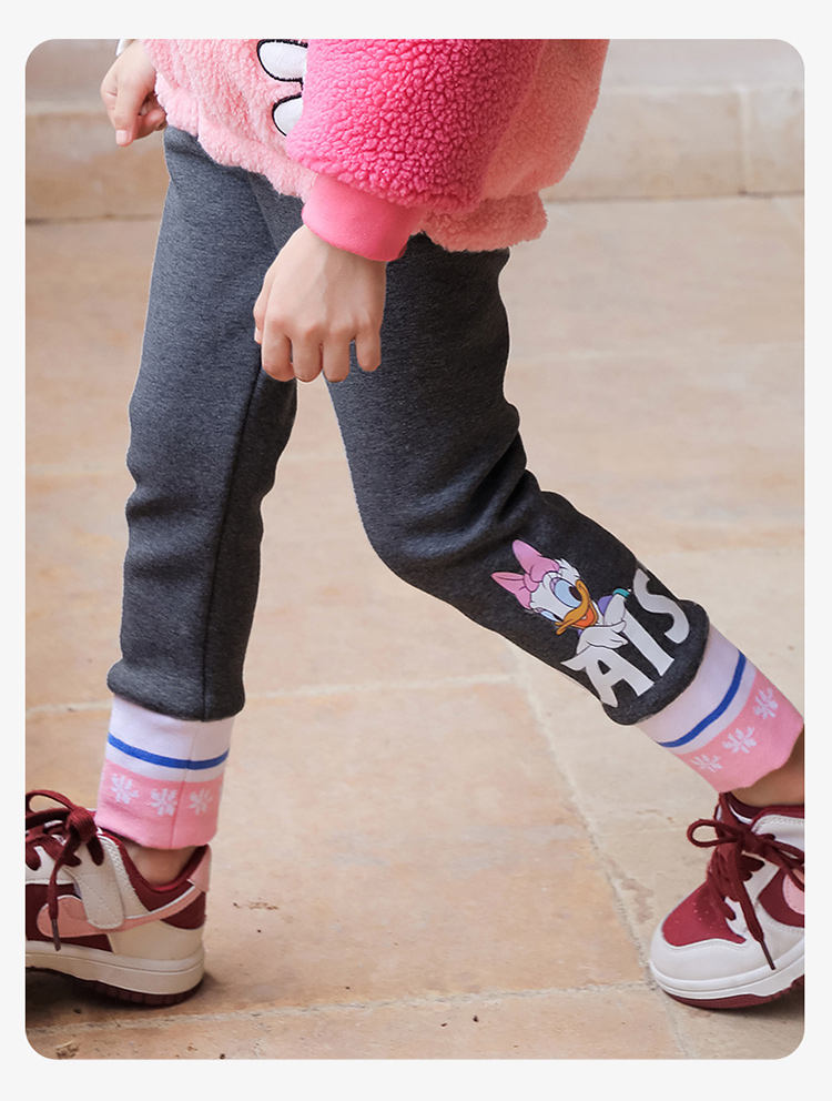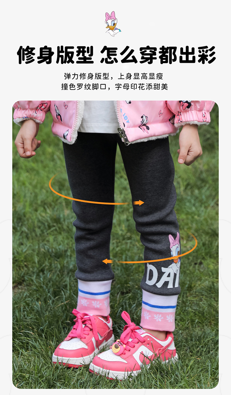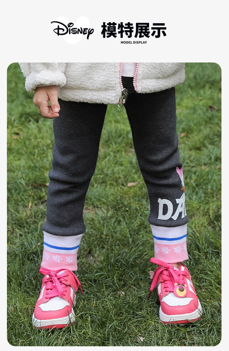 迪士尼童装秋冬新款加绒保暖打底裤女童黛丝印花休闲长裤234K1369