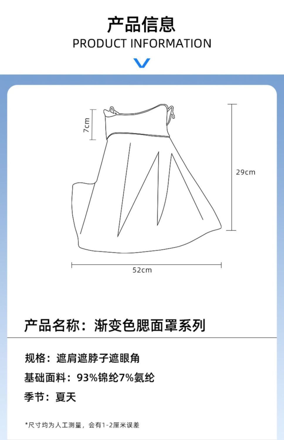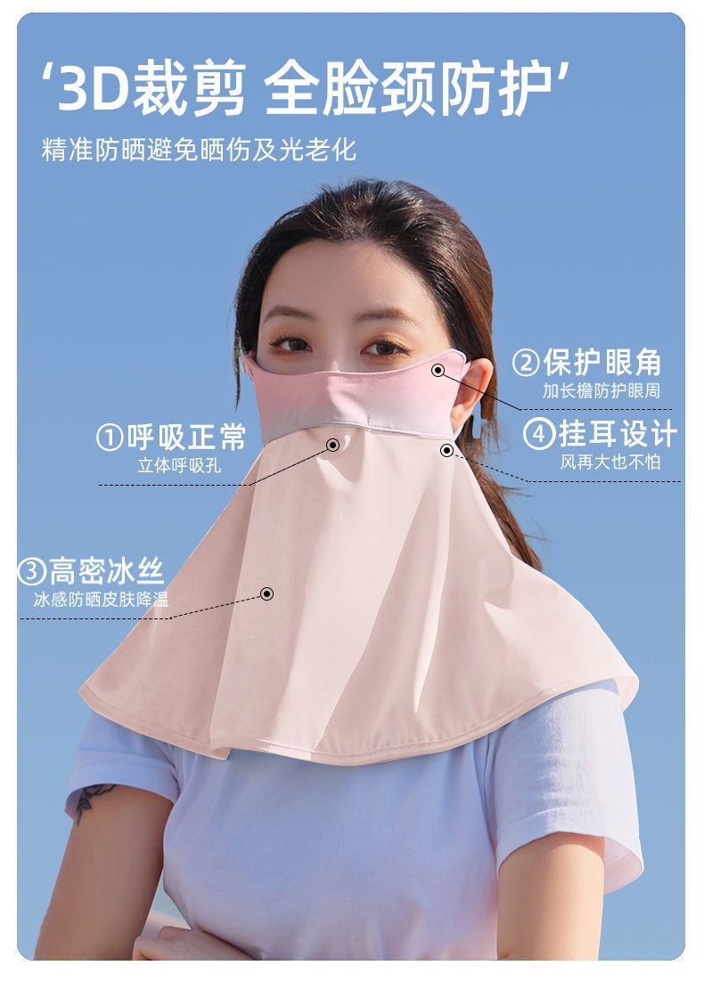 夏季薄款透气冰丝防晒面罩渐变色护颈护眼角防紫外线户外遮脸口罩