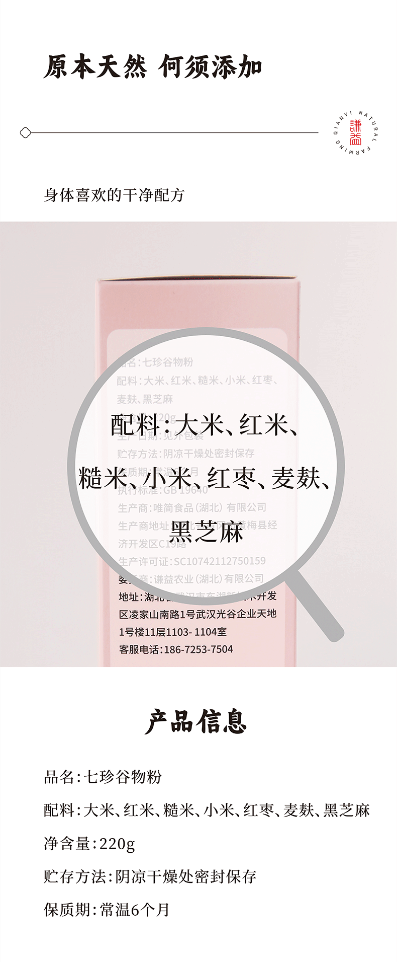 谦益七珍谷物粉220g 七种健康食材 配料干净 易冲泡易吸收 轻松控卡补给