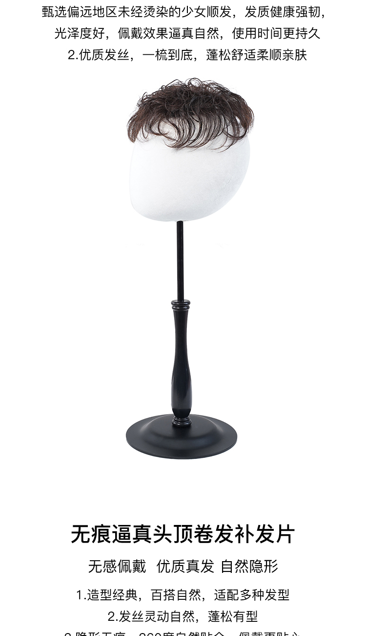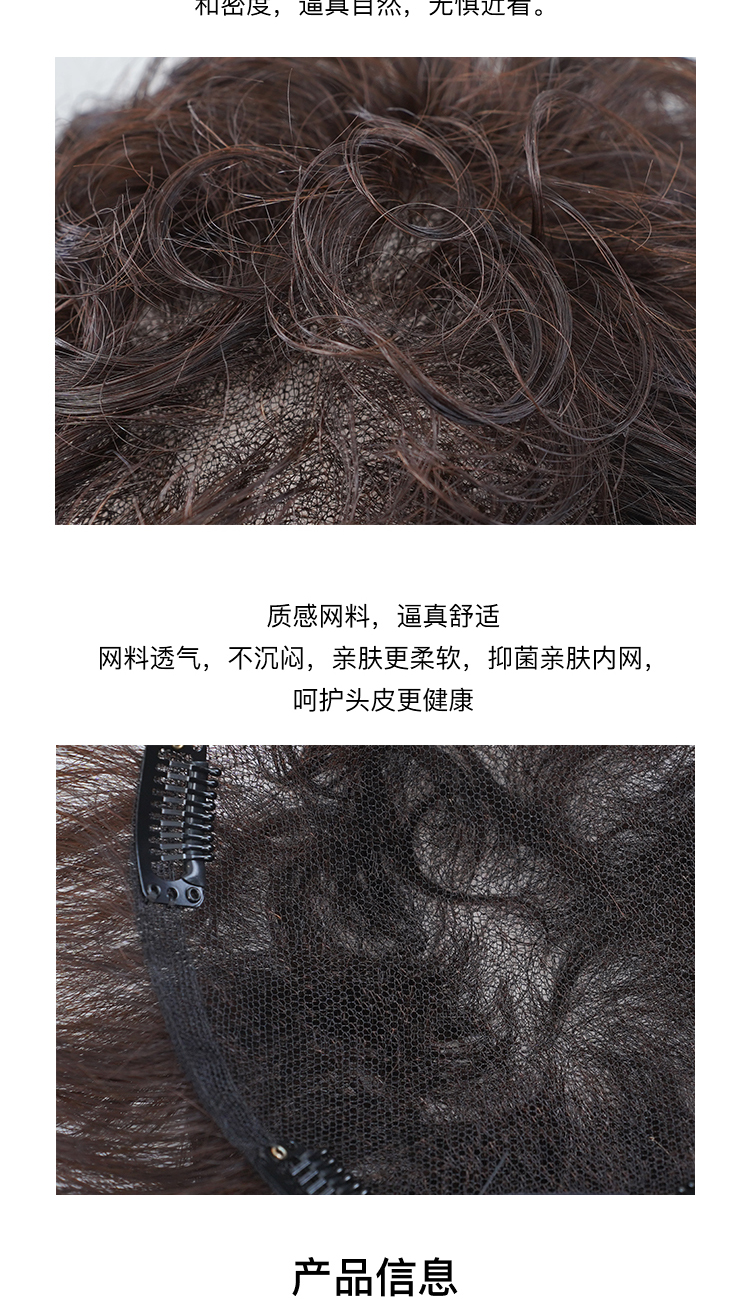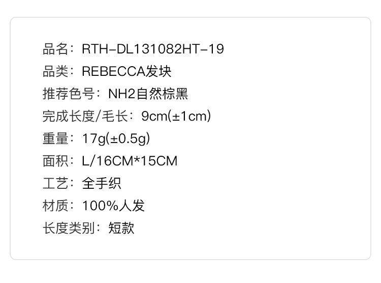 Rebecca瑞贝卡假发女遮白发蓬松短卷发片全真人发全手织头顶头旋补发片