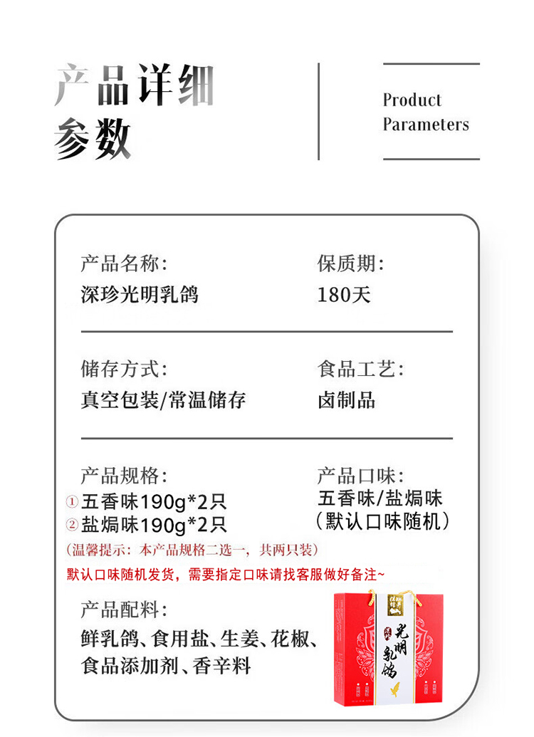 深珍光明乳鸽2只装380g/盒