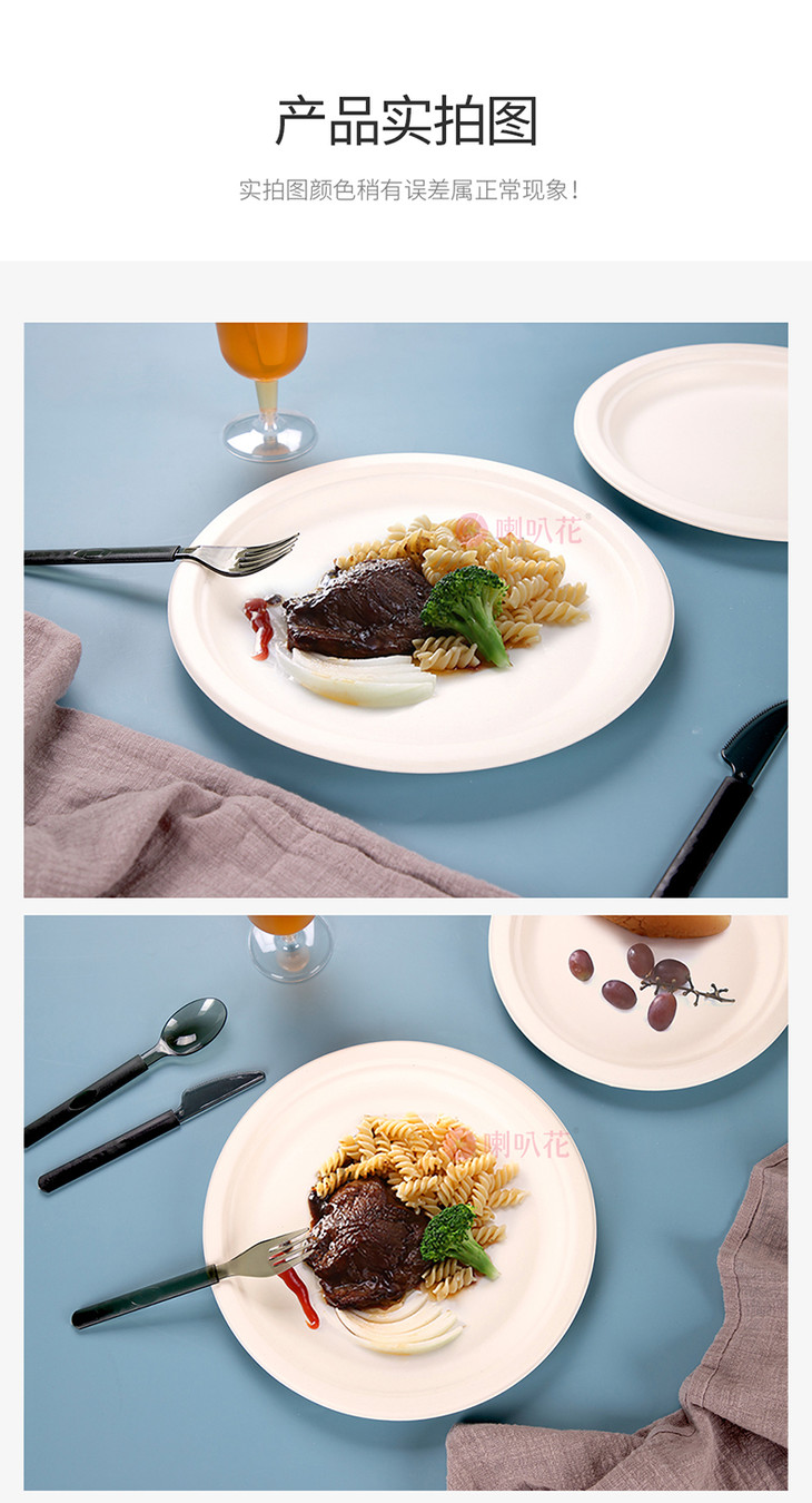 喇叭花一次性环保蔗浆纸盘圆形汤碗饭碗纸碗家用装菜纸碟子餐具