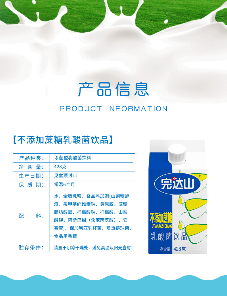 完达山人生百宴不添加蔗糖乳酸菌饮品