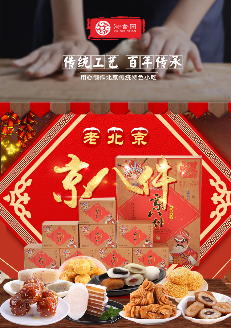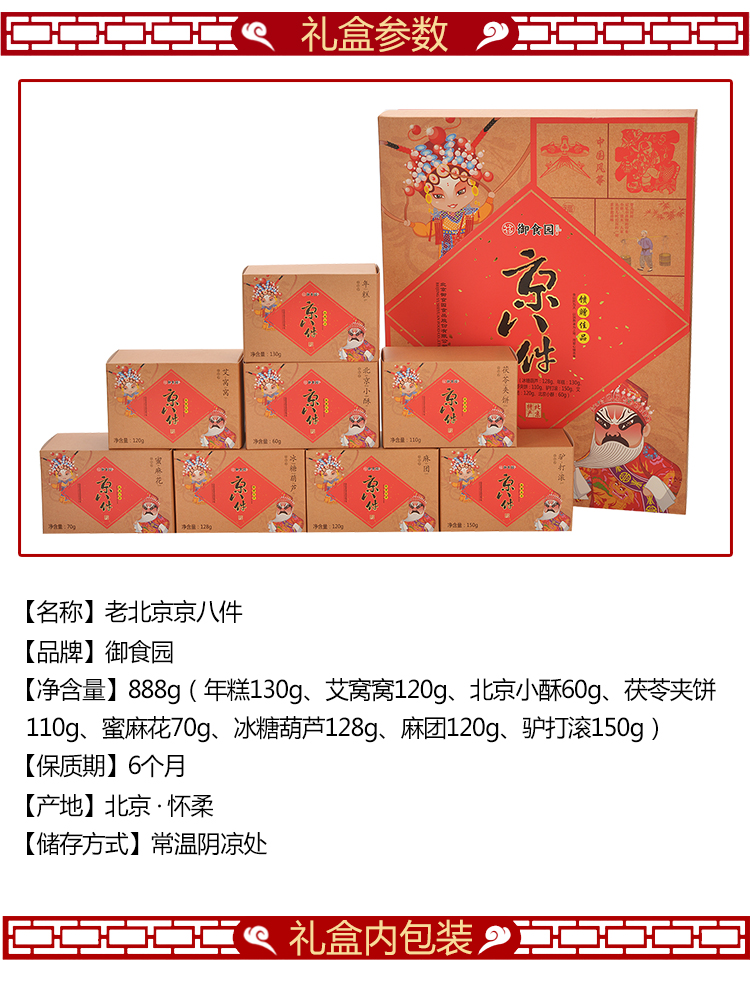 往来礼局 御食园 京八件礼盒888g老北京 京八件礼盒年货礼品 驴打滚 艾窝窝 (包装升级中,新老版包装随机发货)