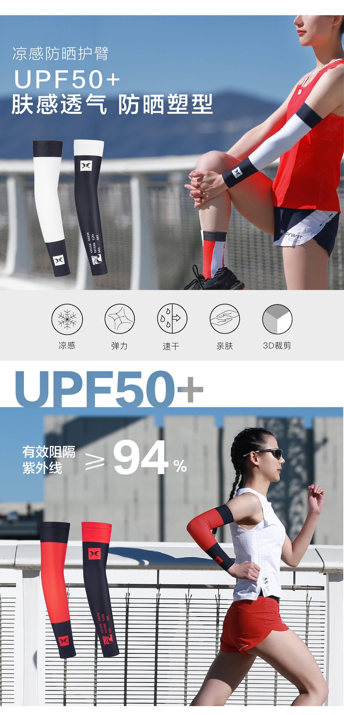 BW展翼亲肤冰爽防晒塑形跑步运动男女护臂