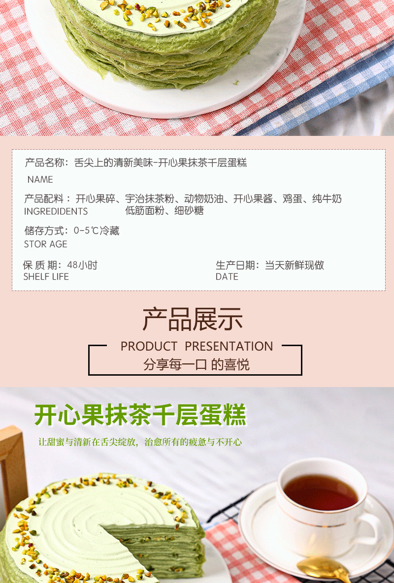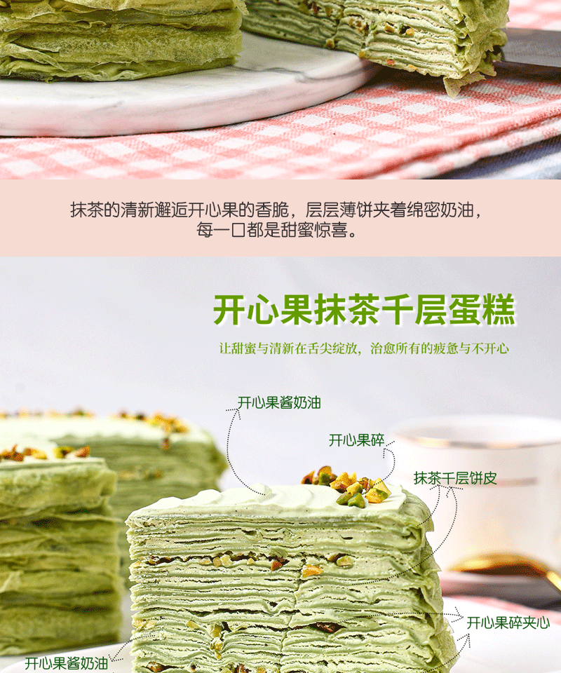【清新爆款】开心果抹茶动物奶油千层蛋糕 | 一口开启春日绮梦【惠州】