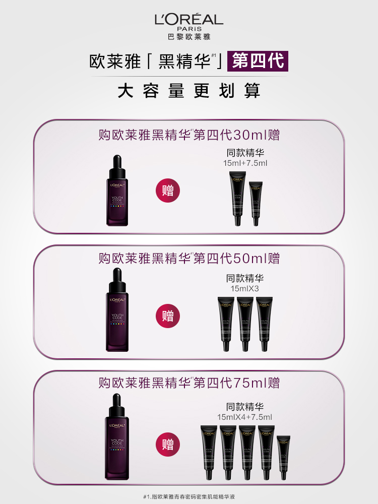 春季焕新【全球购·全新第四代】LOREAL欧莱雅黑精华肌底液充盈肌底补水保湿75ml/瓶