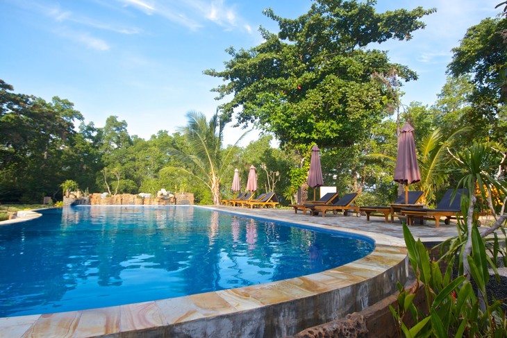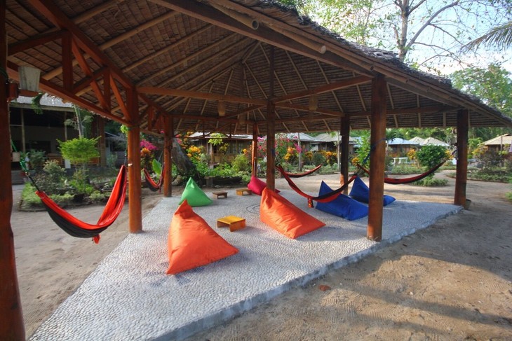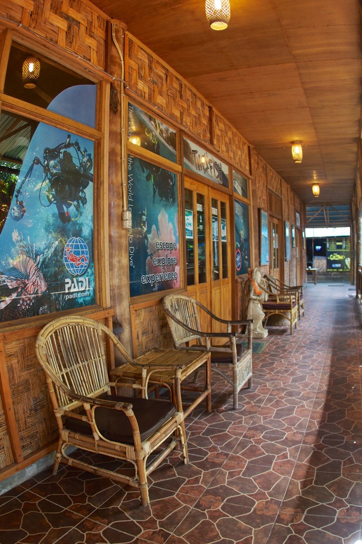 Two Fish Divers 的布纳肯店是传统印尼热带海岛的风格,一步之遥的沙滩海水,出了小屋就是优美的花园环境,环绕在一个18m的泳池旁,为了保证服务质量,度假村最多接待24位潜水员,可以给你提供最贴心的尊享服务。