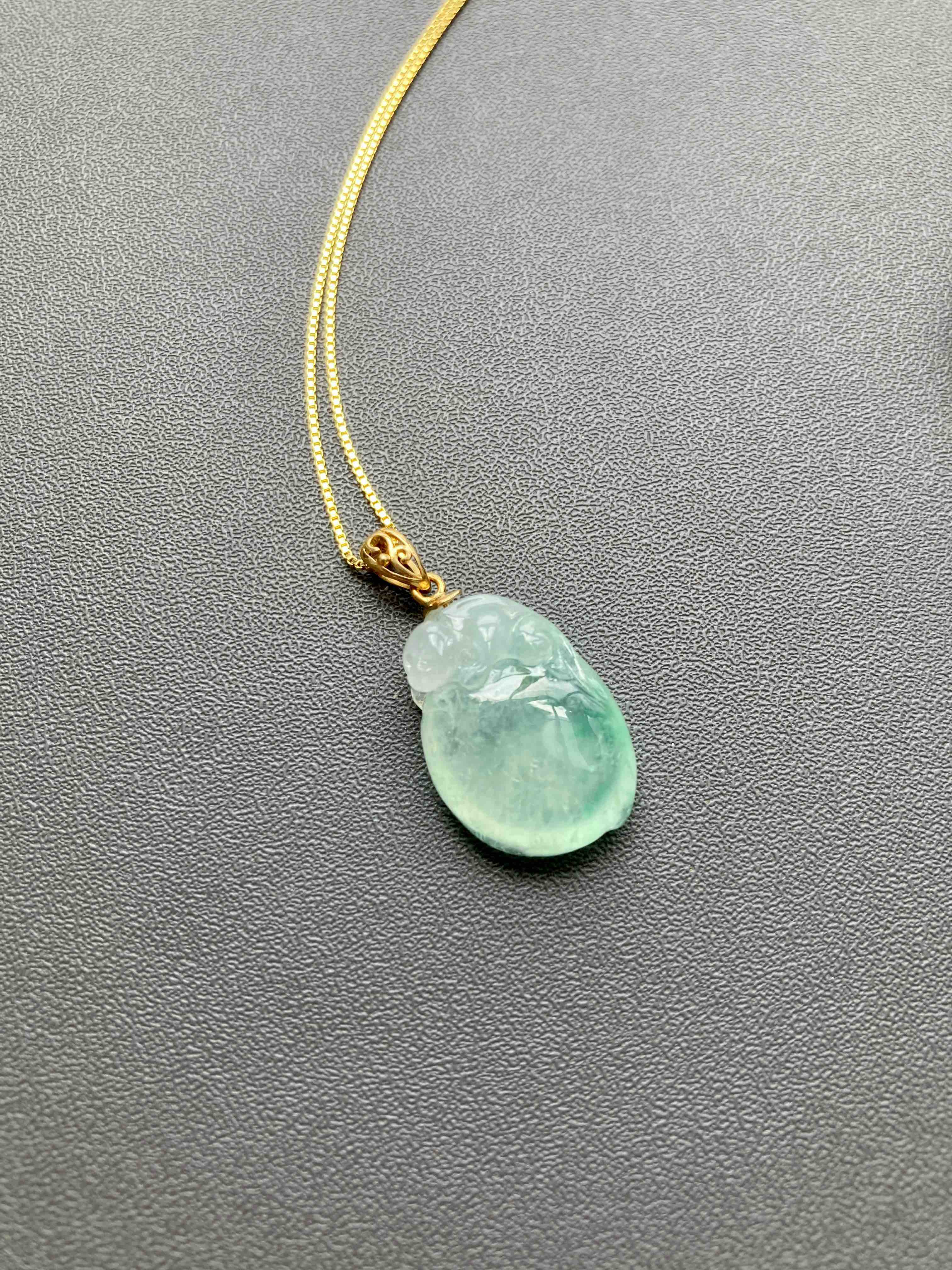 冰种阳绿翡翠蛋面艺术吊坠18k黄金钻石镶嵌