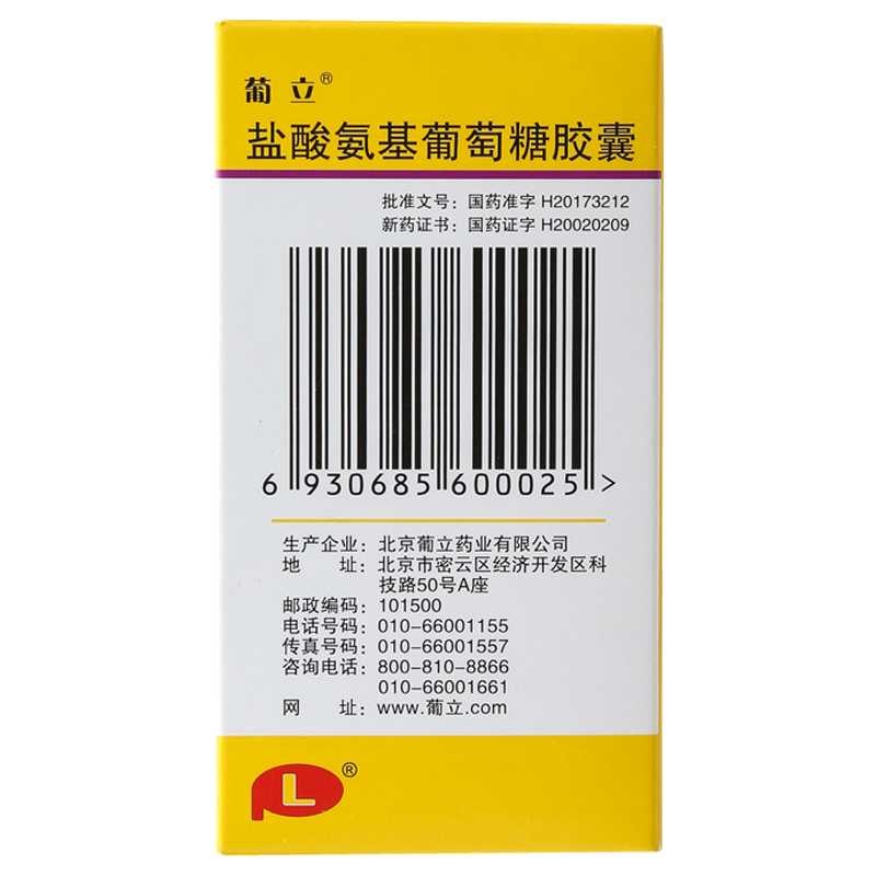 葡立 盐酸氨基葡萄糖胶囊42粒/盒缓解和消除骨关节炎关节疼痛肿胀