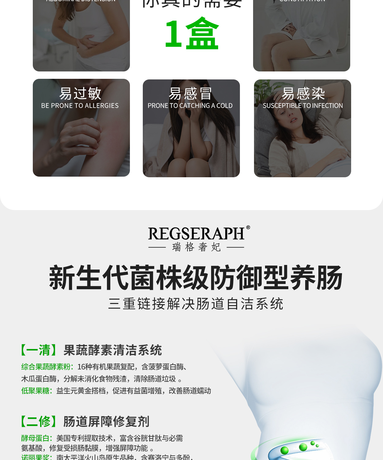 REGSERAPH加拿大益生菌每片360亿大人成人肠胃不成型闹腾粘马桶