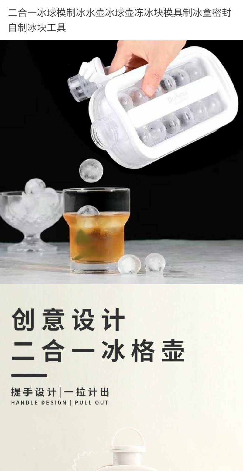 二合一冰球模制冰水壶冰球壶冻冰块模具制冰盒密封自制冰块工具