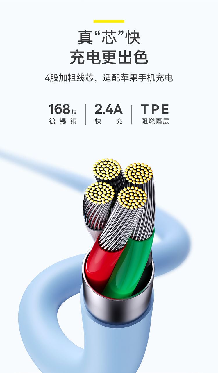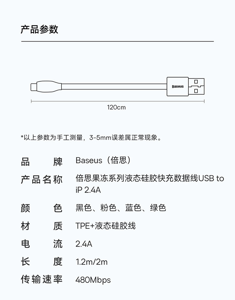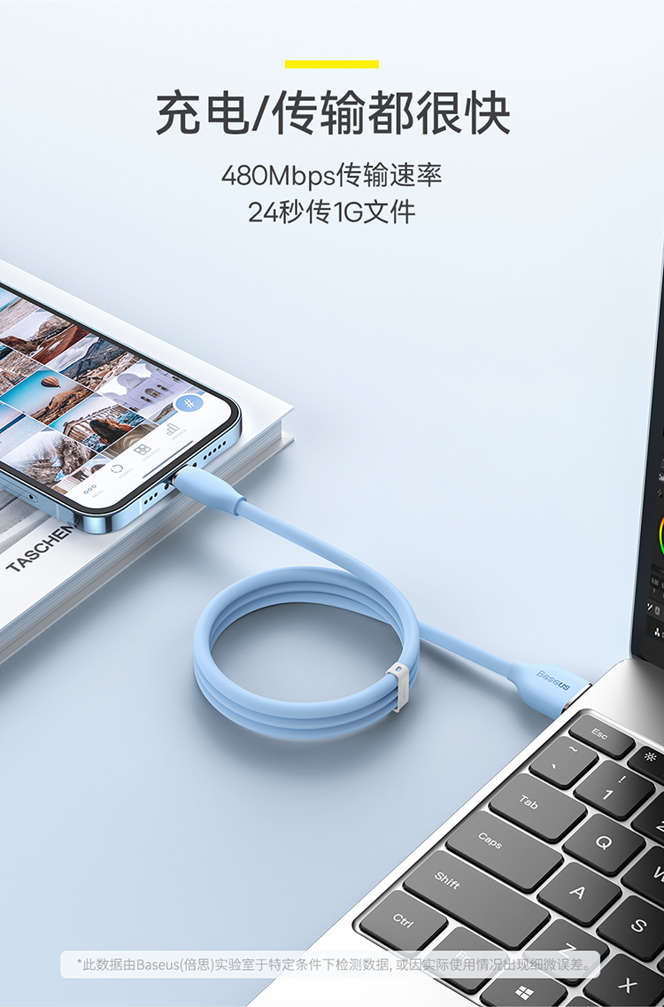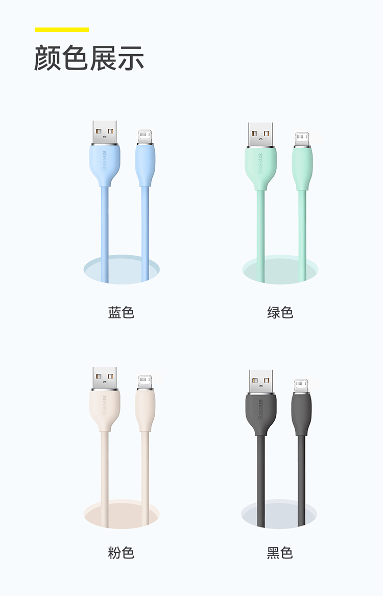 倍思 果冻系列 液态硅胶快充数据线USB to iP 2.4A