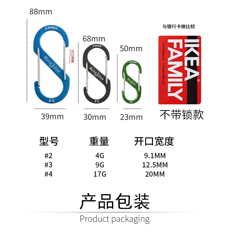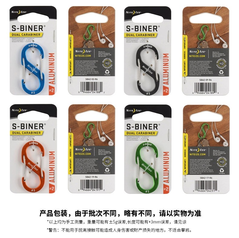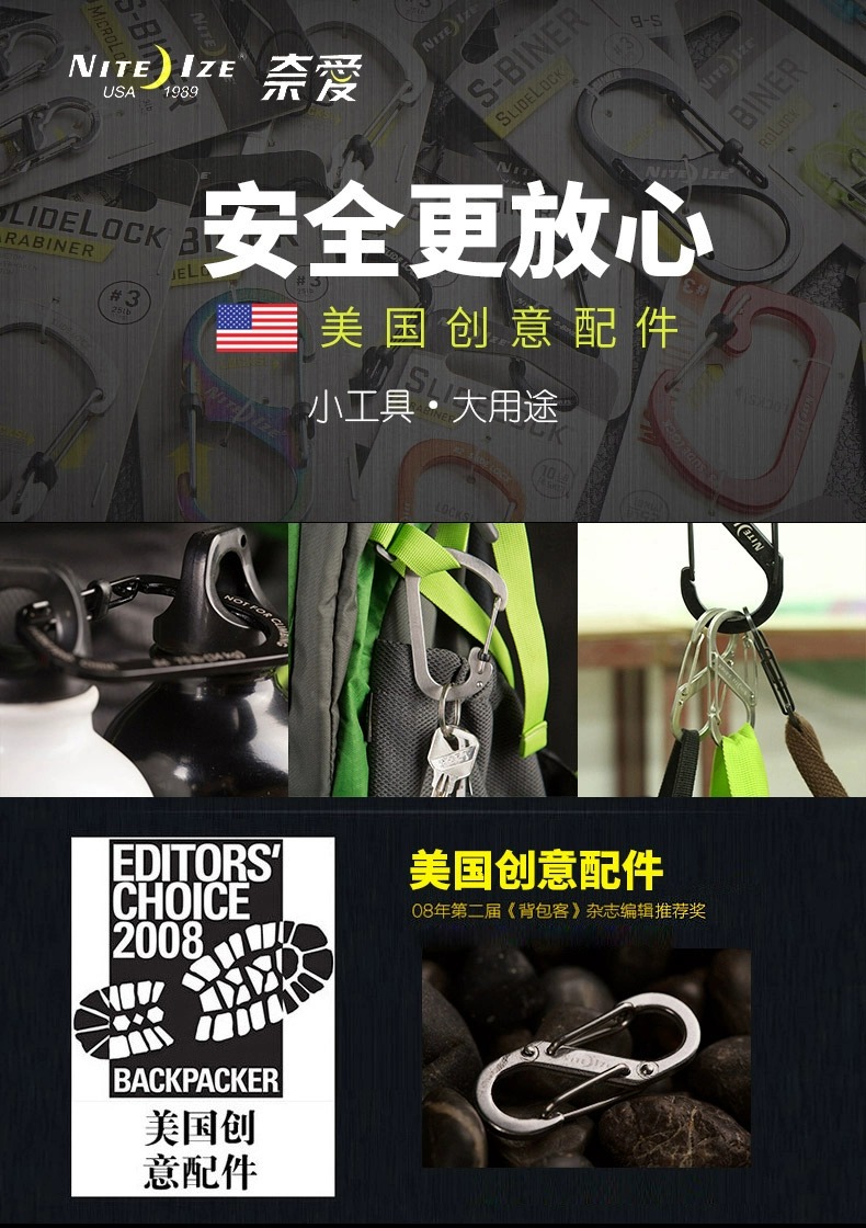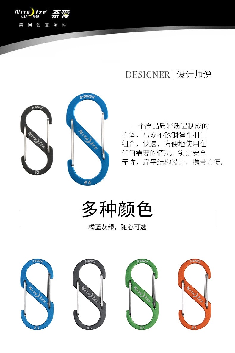 【福利款】NITEIZE奈爱8字扣铝制彩色金属户外车钥匙扣快挂登山包调节扣