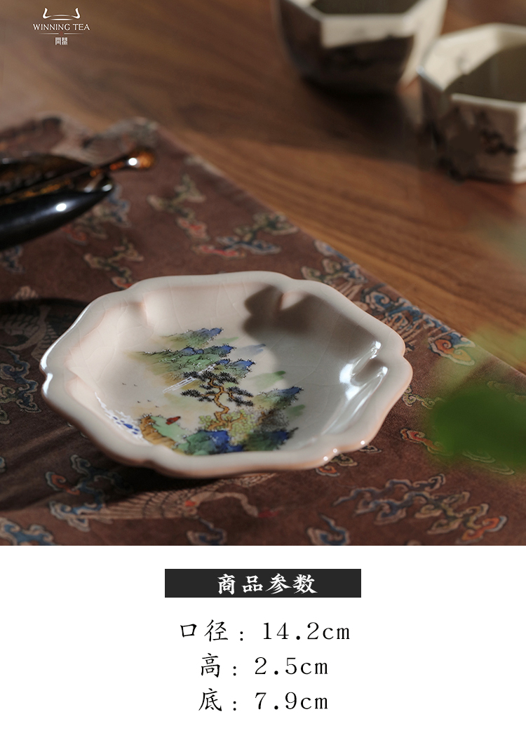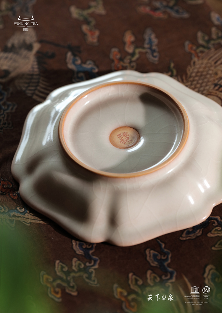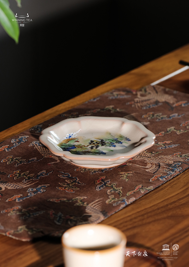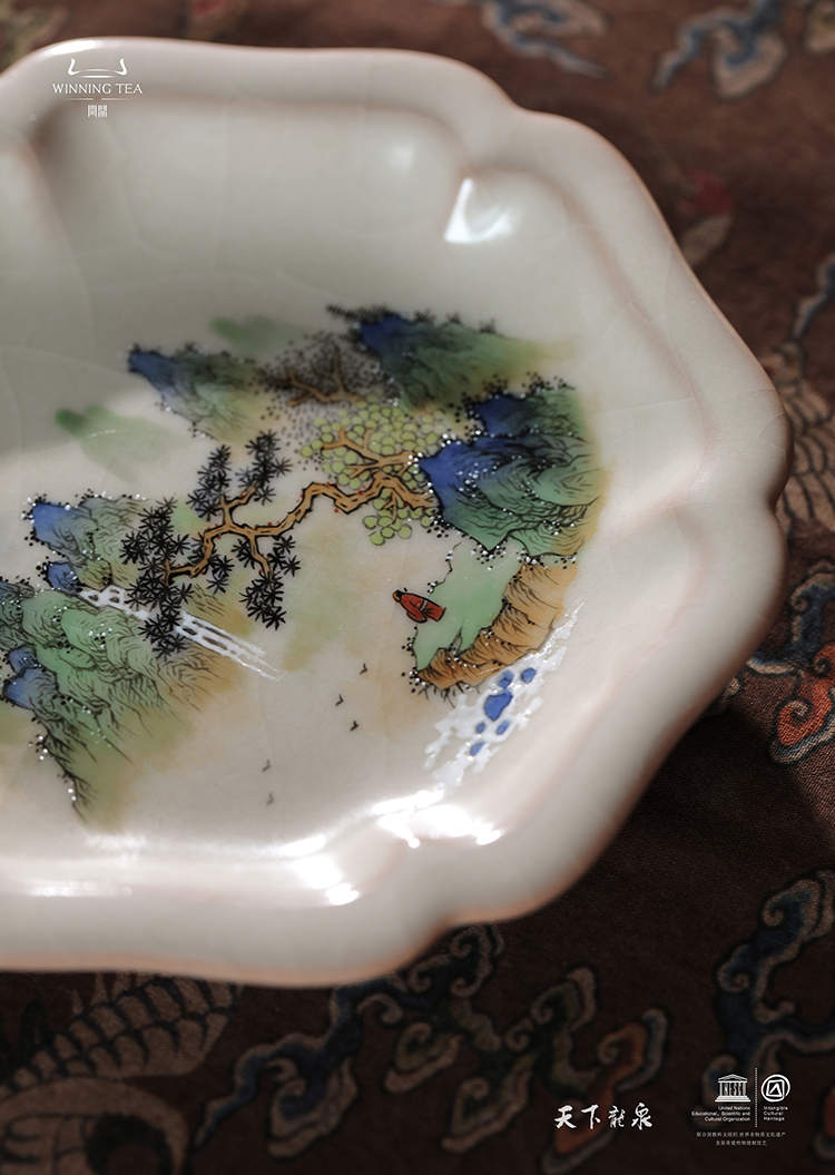 龙泉问鼎彩绘哥窑雪鸿壶承(青绿山水)