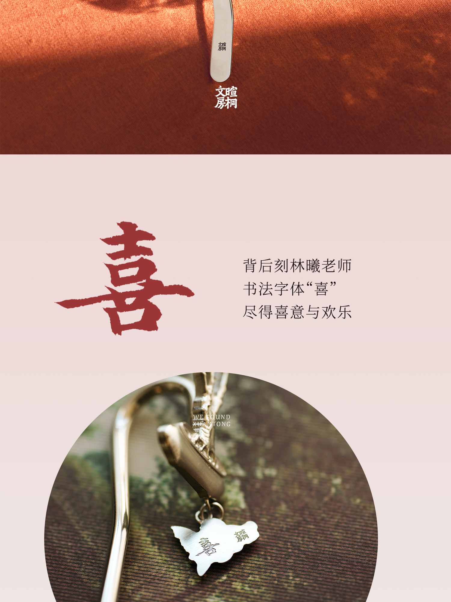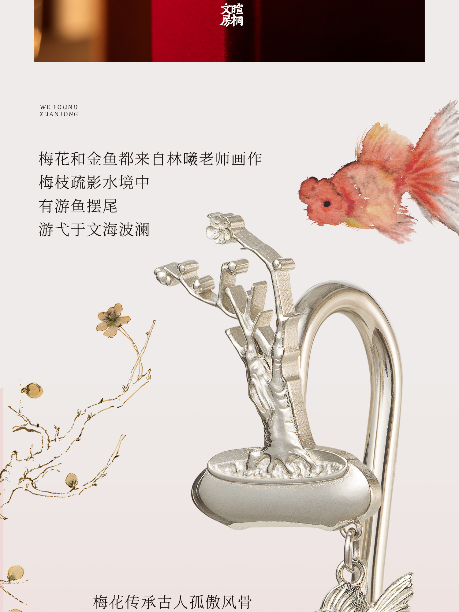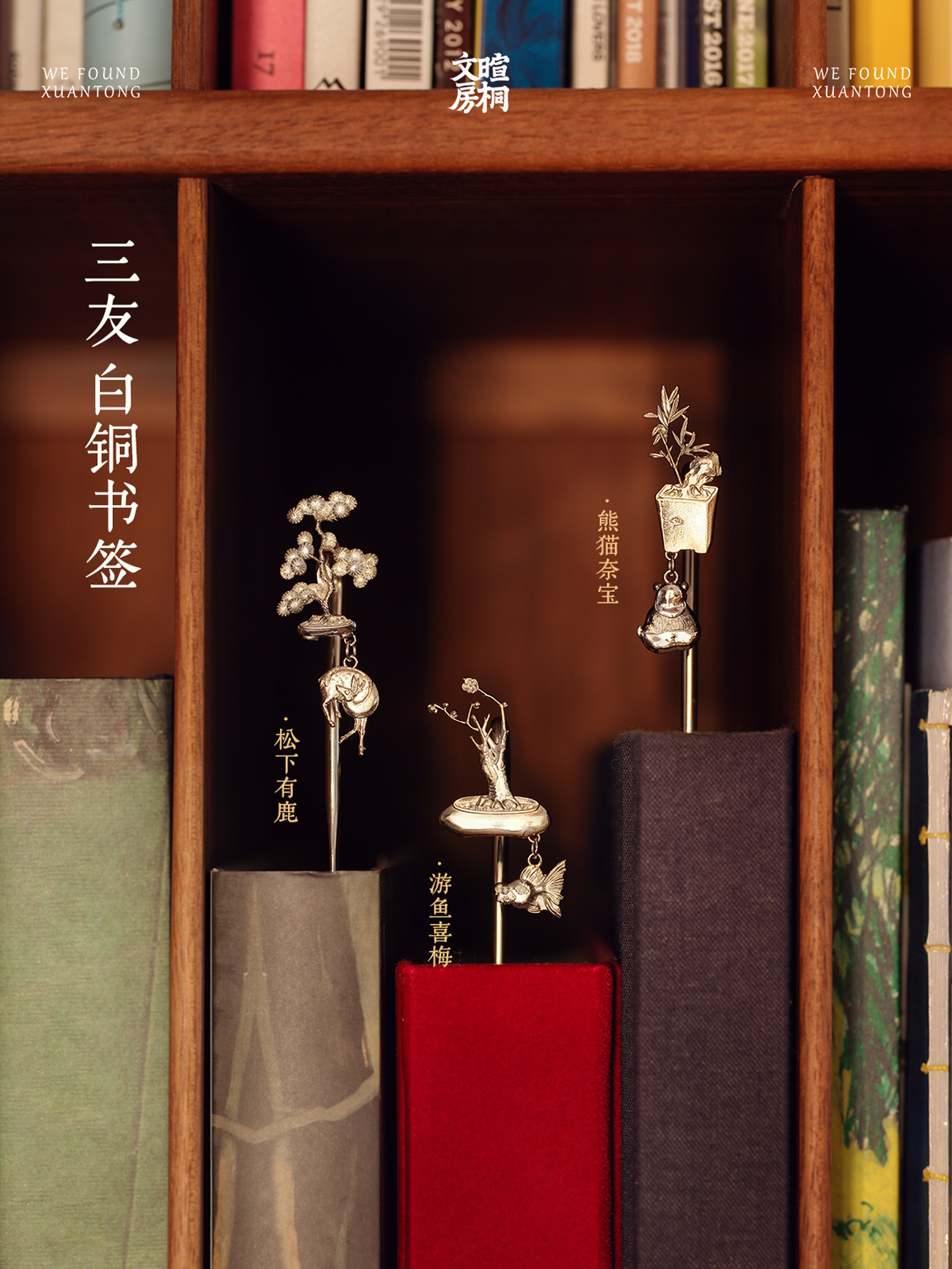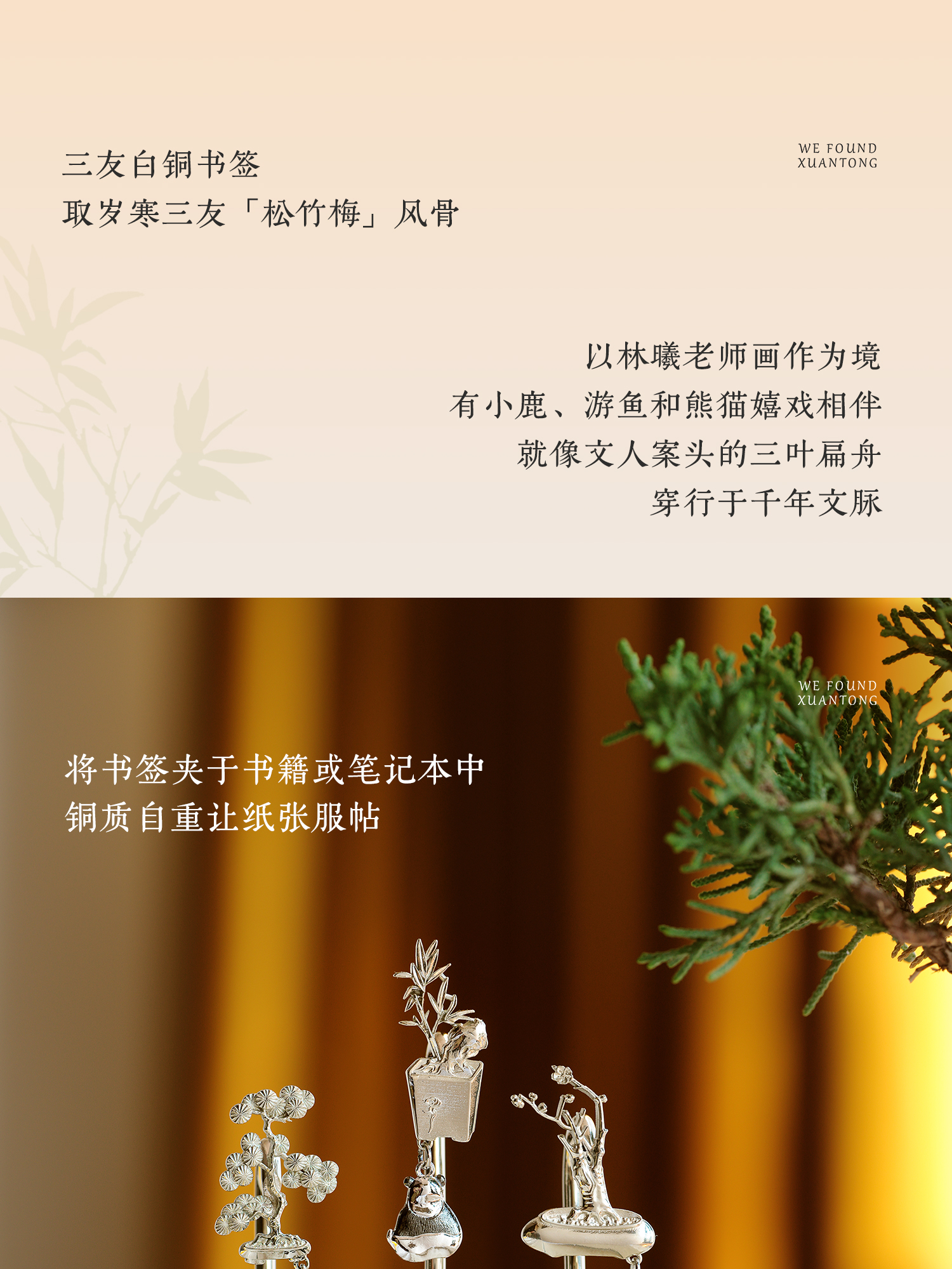 暄桐文房 三友 白铜书签 松竹梅