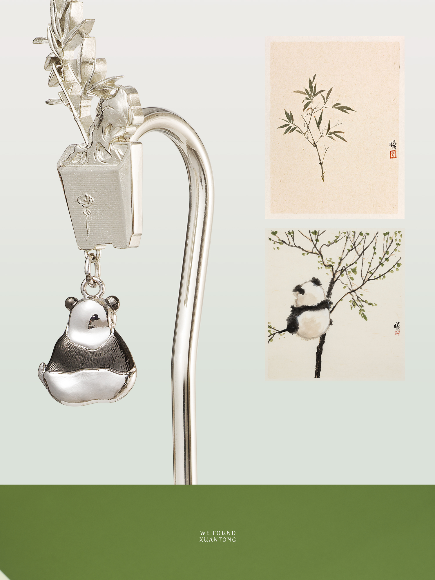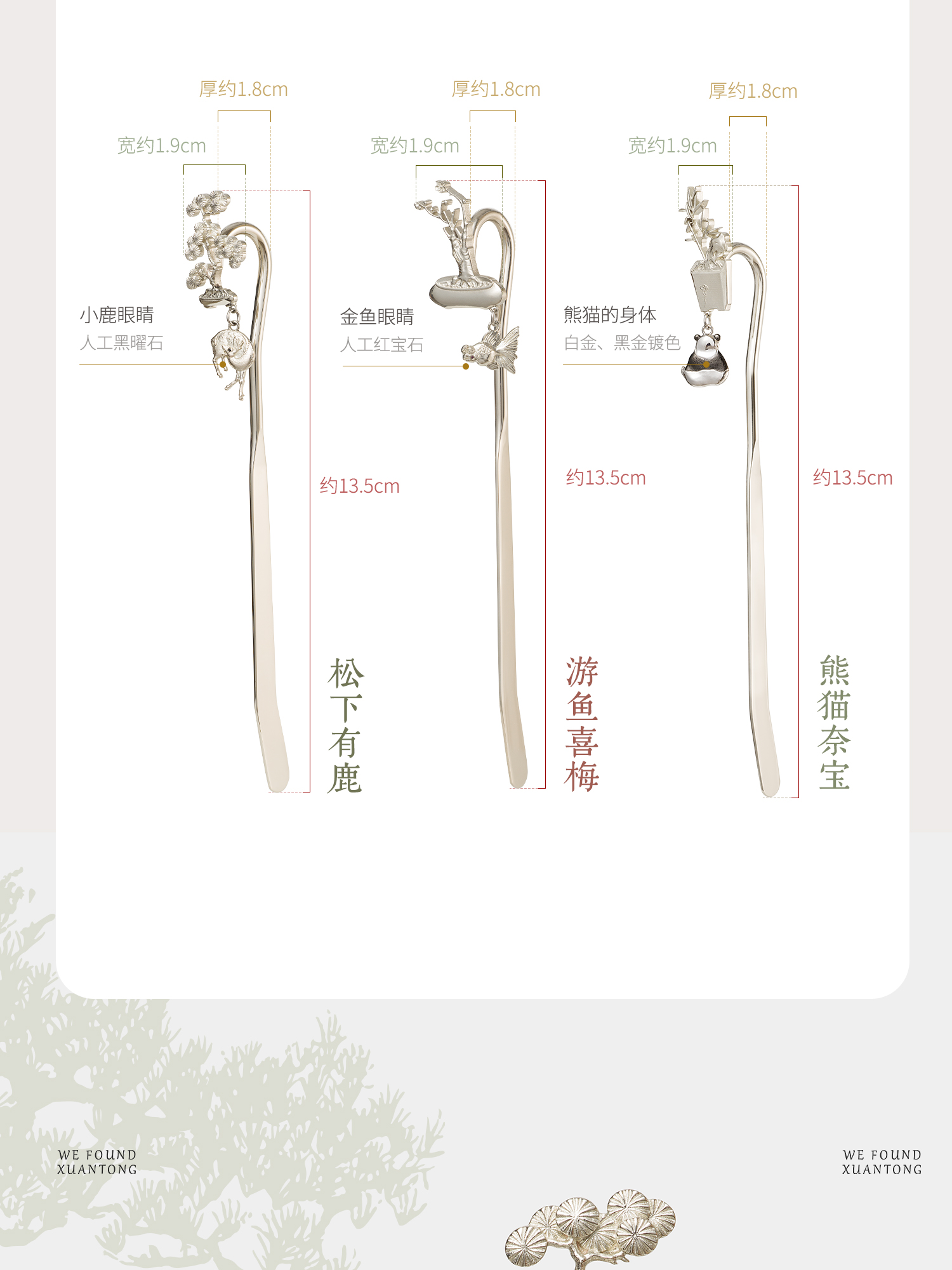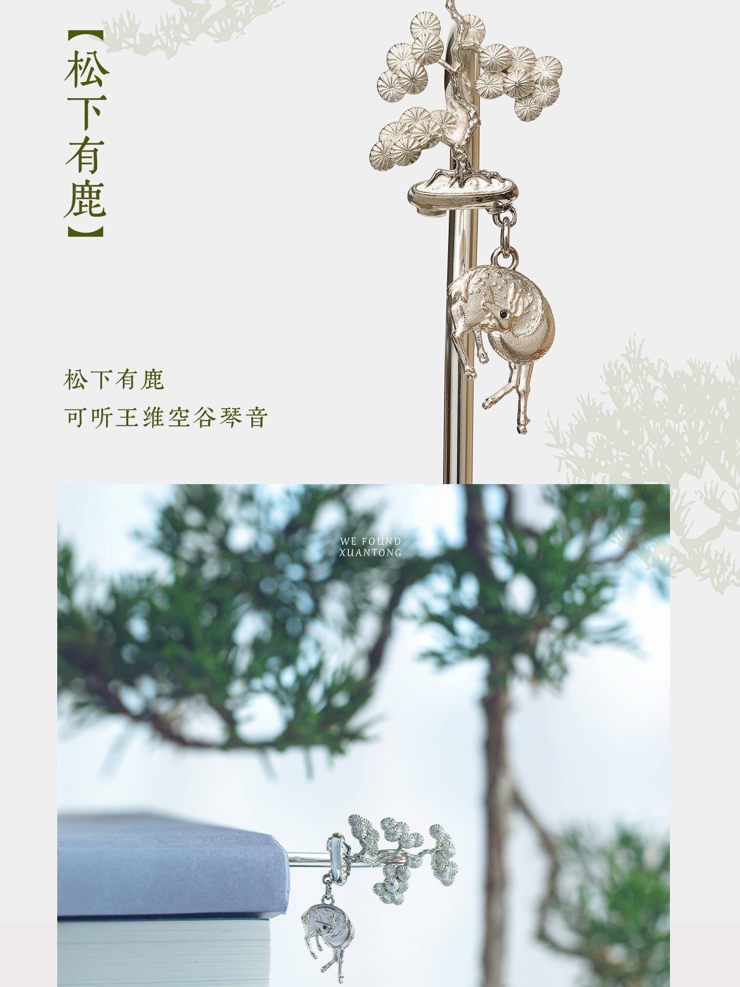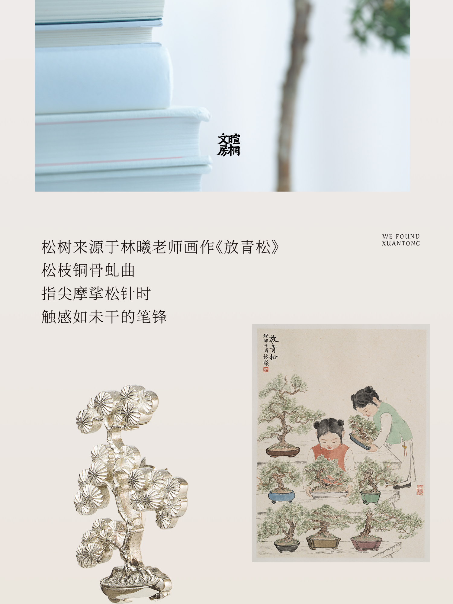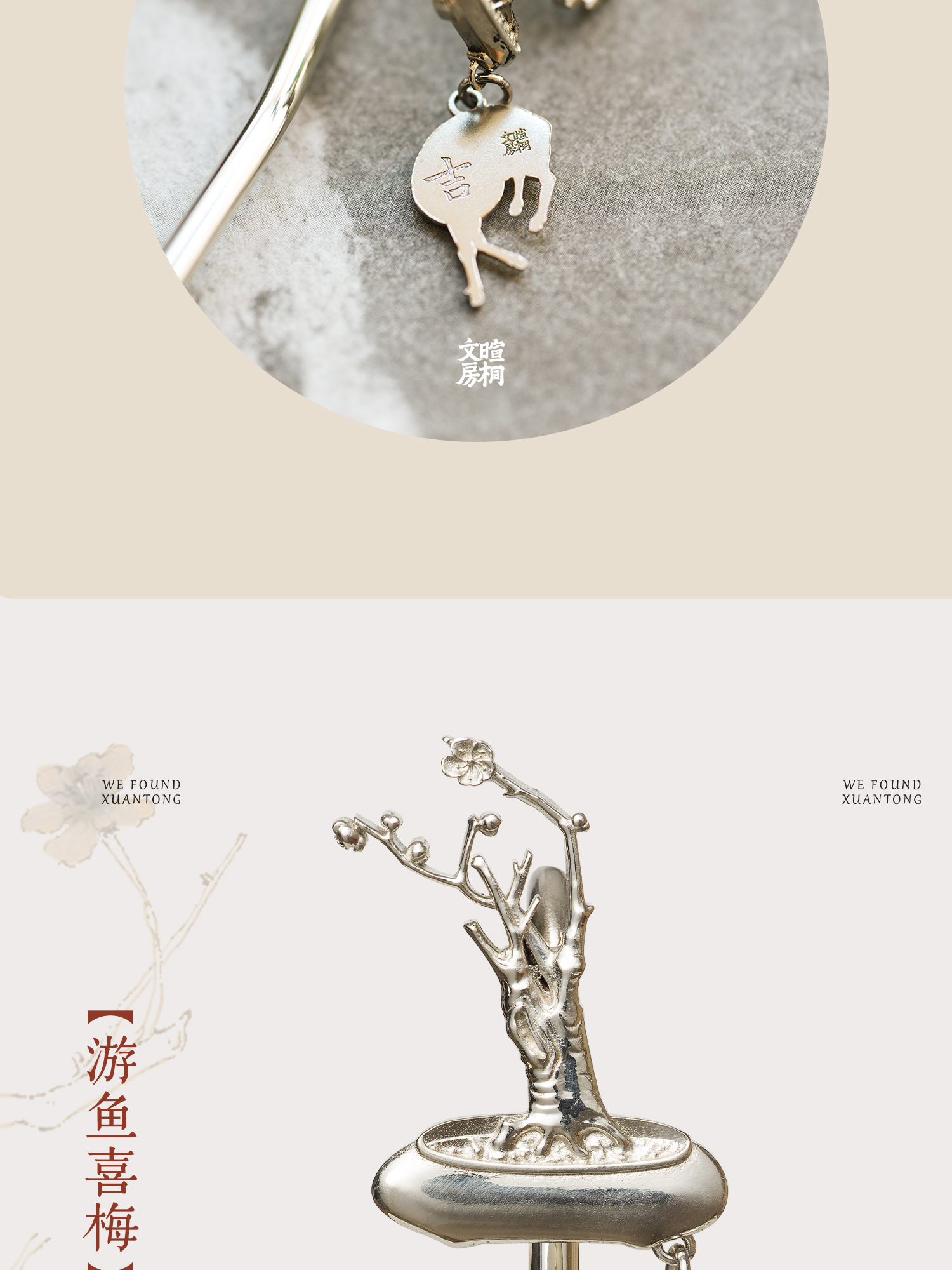 暄桐文房 三友 白铜书签 松竹梅
